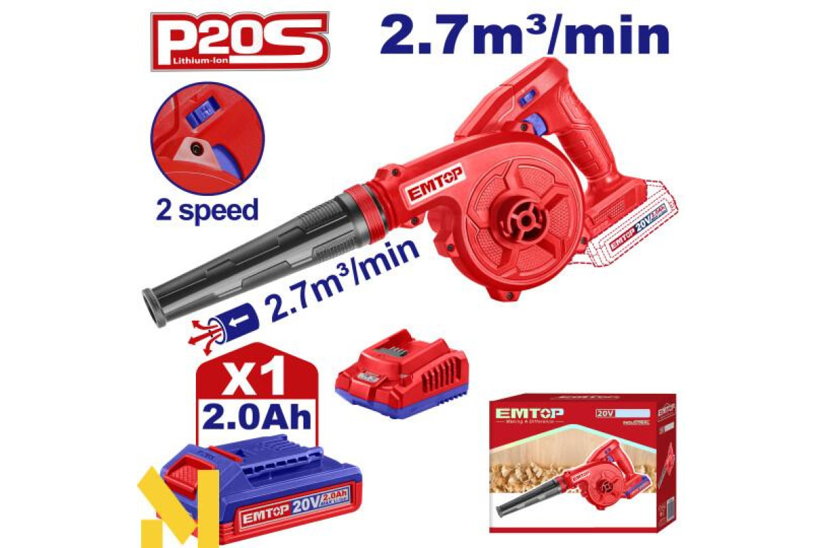 Основні переваги садової повітродувки акумуляторної Emtop ELAB200581: