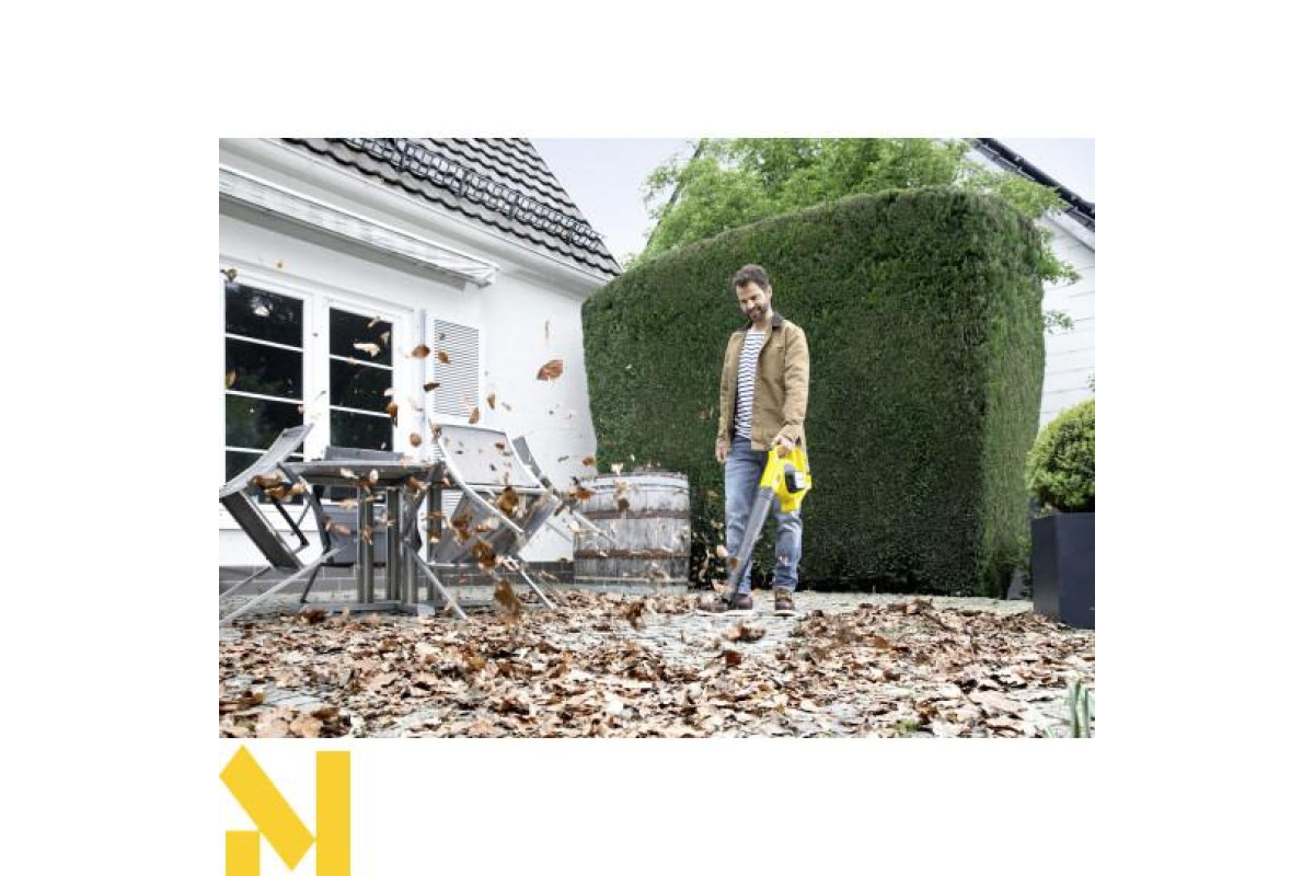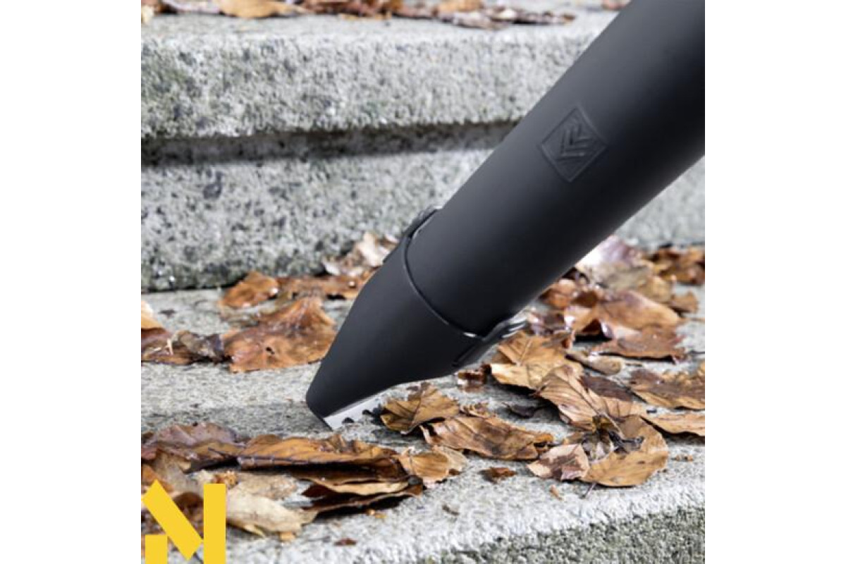 Акумуляторна повітродувка 18 В з хорошим балансуванням ергономічно поміщається в руці і досягає максимальної швидкості потоку повітря 210 км/ч. А знімна плоска насадка зі скребком дозволяє легко здувати листя, а також зчищати мокре листя або злежалий бруд.