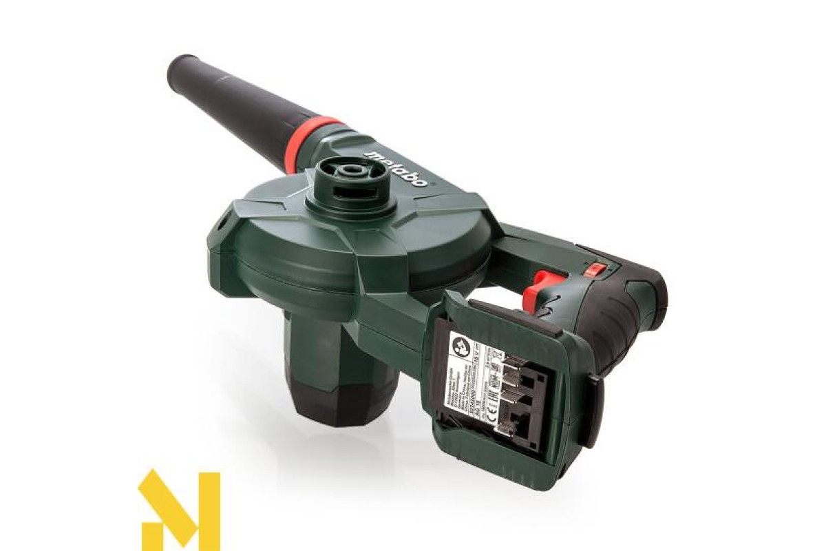 Акумуляторна повітродувка Metabo AG 18 ідеальний інструмент для здування тирси з інструменту, робочого місця, дахів, транспорту і т.д. Поставляється без акумуляторних блоків і зарядного пристрою.