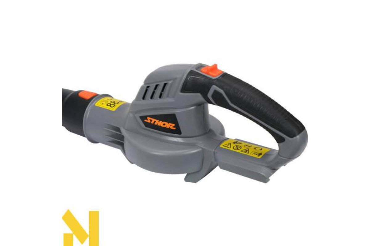 Повітродувка працює від акумулятора 20 В від платформи Sthor. Призначений для видалення бруду з під’їздів, доріжок, гаражів тощо. Легка конструкція дозволяє використовувати повітродувку однією рукою. Знімна трубка насадки для зручного зберігання.