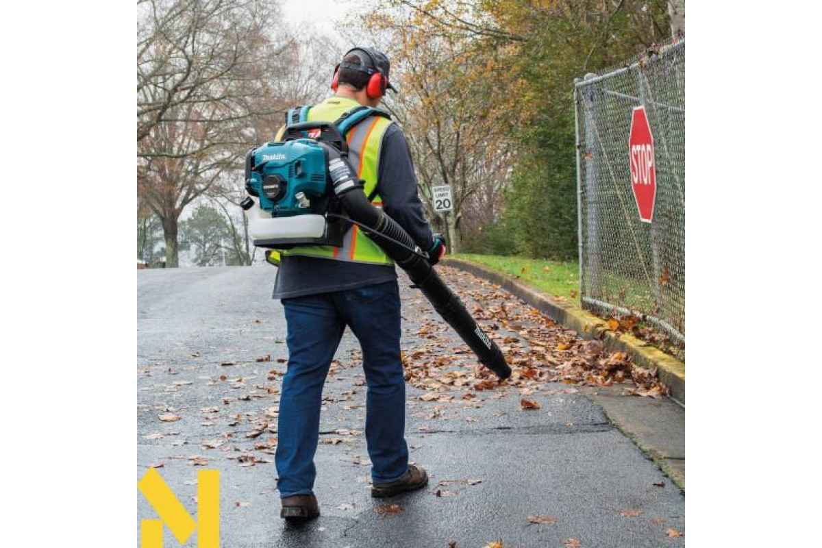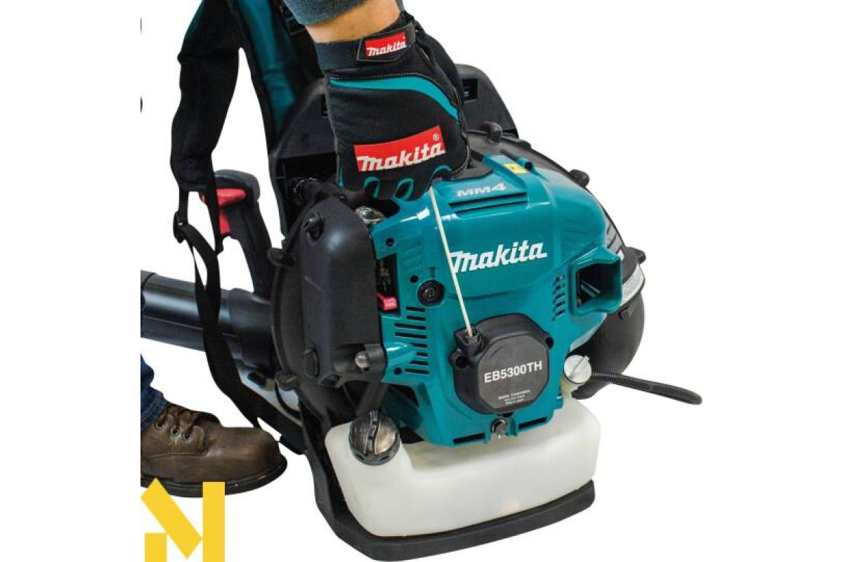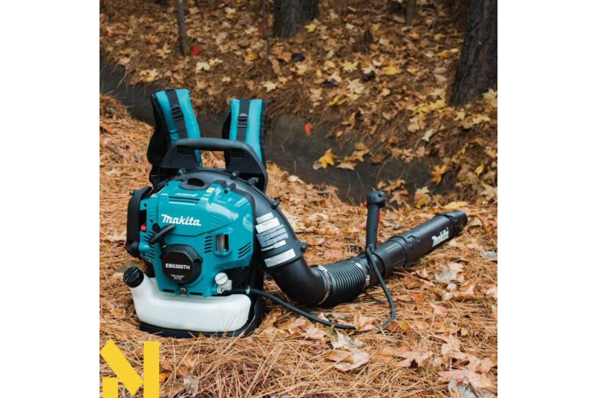 Повітродувка Makita EB5300TH призначена для професійних робіт при збиранні садових і паркових територій. За допомогою даного потужного і продуктивного інструменту ви зможете швидко і ефективно зібрати сухе листя, траву і дрібне сміття на своїй ділянці. Поєднуючи в собі автономність, економічність і ефективність, повітродув ідеальний для щоденних інтенсивних навантажень. Makita EB5300TH оснащенаа 4-тактним двигуном, що не вимагає спеціального обслуговування, що забезпечує довгу роботу інструменту. Апарат оснащений глушником великої місткості, що забезпечує низький рівень шуму. Механічна автоматична декомпресія мотора розроблена для швидкого і легкого запуску, з потужними антивібраційними кріпленнями між рамою і двигуном для поліпшення комфорту оператора. М'яке плечове ранцеве оснащення налаштовується по зростанню і будовою оператора. Труба для видування повітряного потоку регулюється на переважну довжину за допомогою додаткових насадок, що також забезпечує ідеальну зручність в роботі з повітродувки.