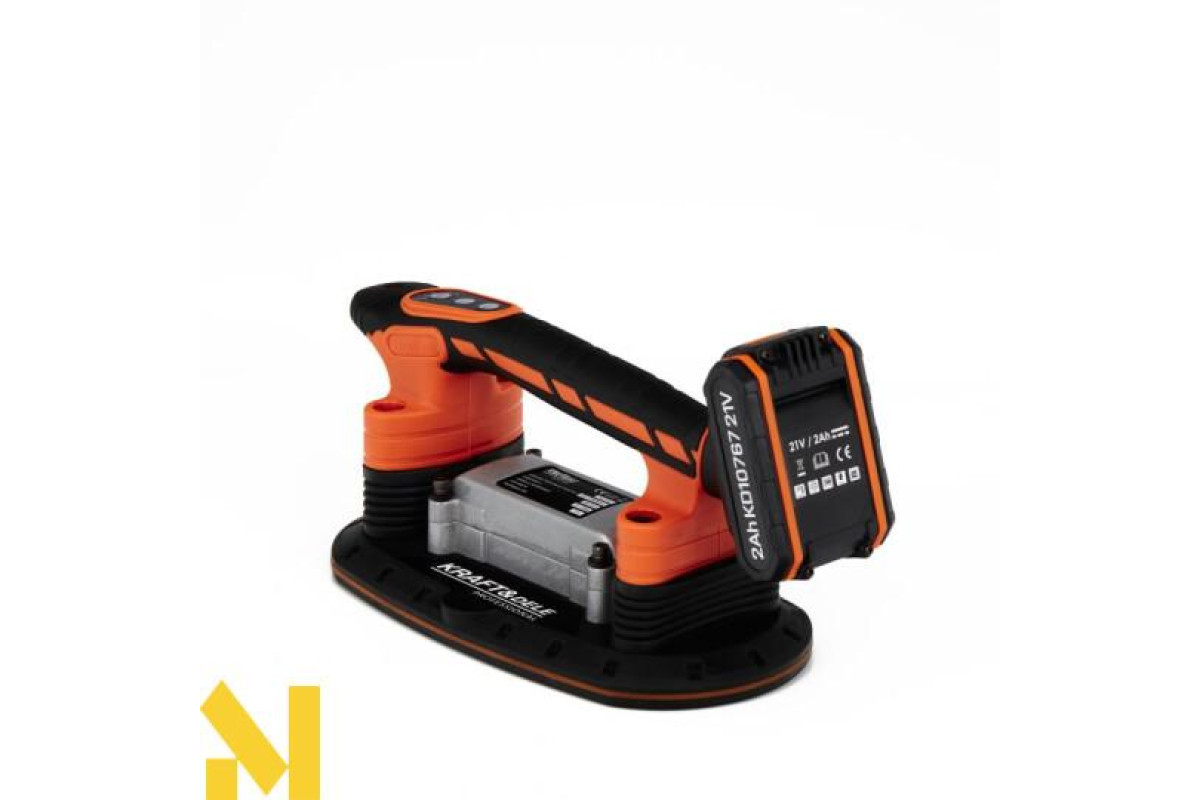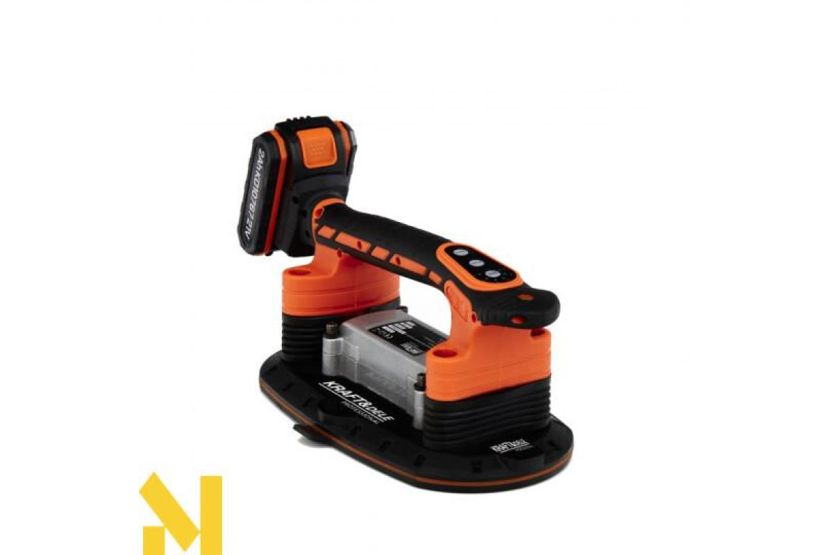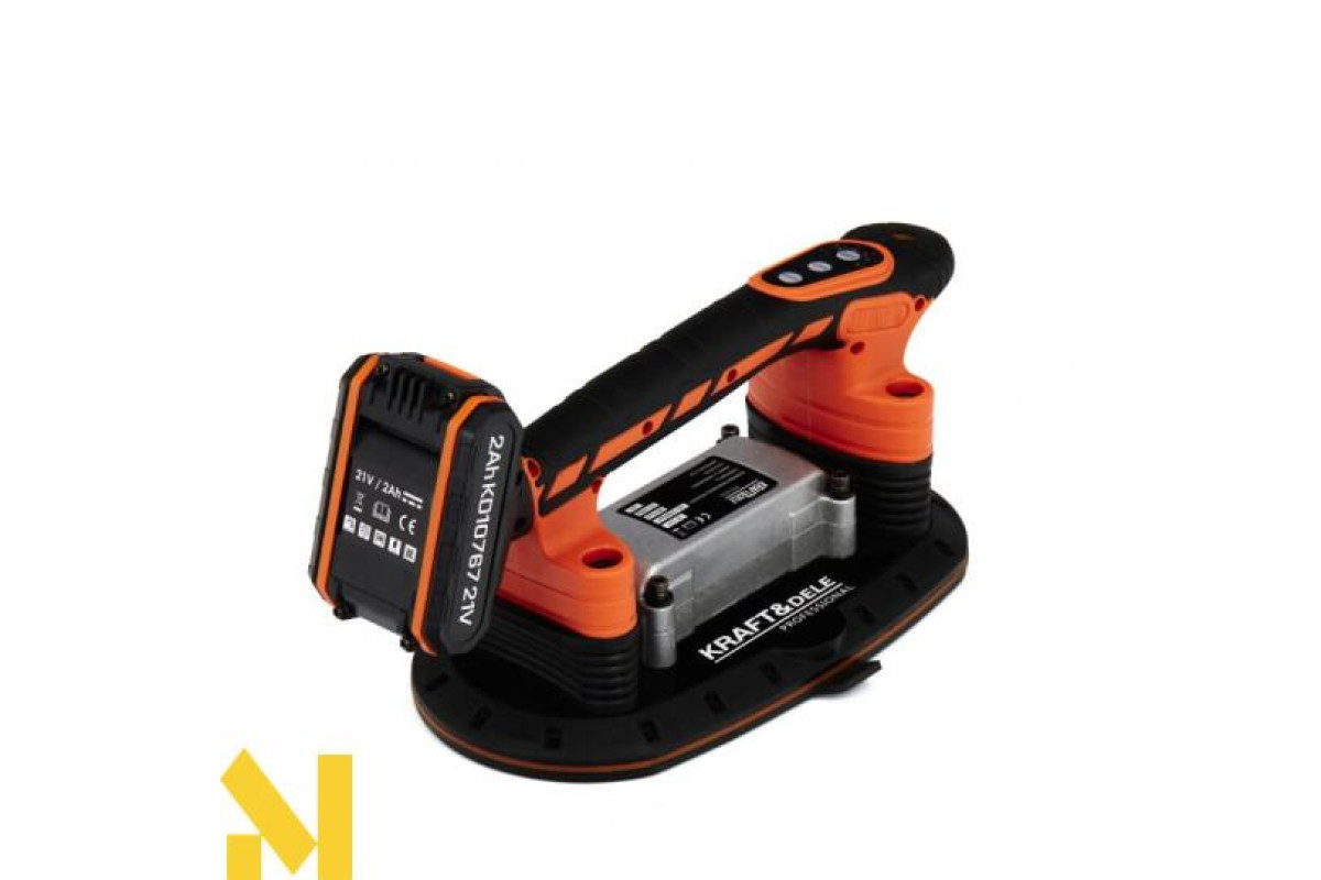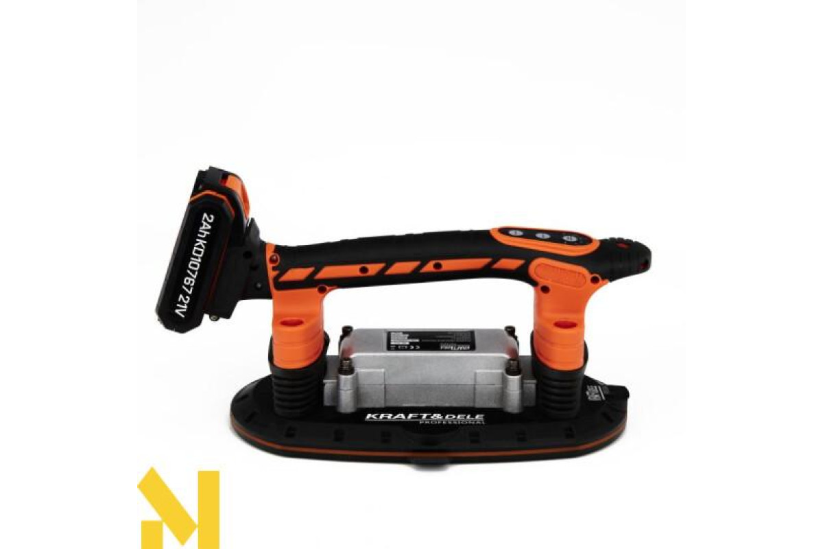 Акумуляторна вібраційна присоска для укладання плитки польського бренду Kraft&Dele, модель KD10767.Дозволяє легко позиціонувати плитку за допомогою присоски, з можливістю піднімати предмети вагою до 150 кг . Крім того, завдяки функції вібрації, він видаляє залишки бульбашок повітря, які можуть призвести до потенційних тріщин, таким чином забезпечуючи міцне та довговічне з’єднання плитки з основою.