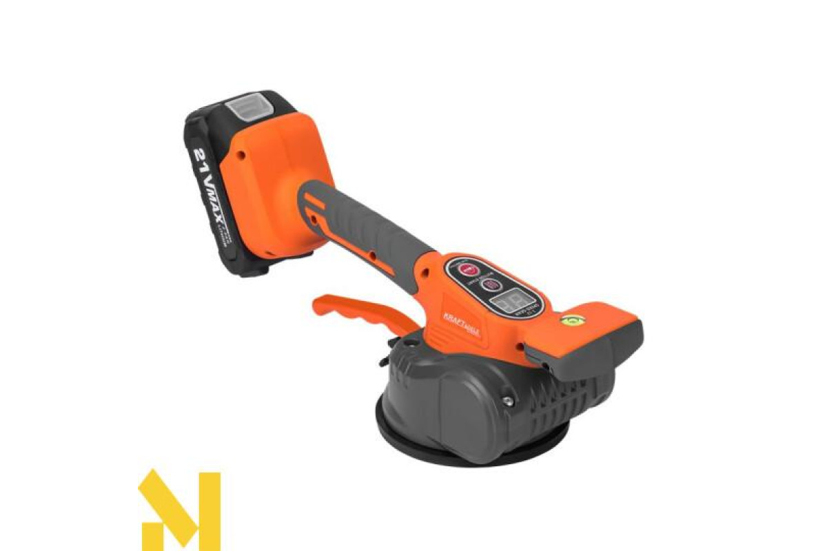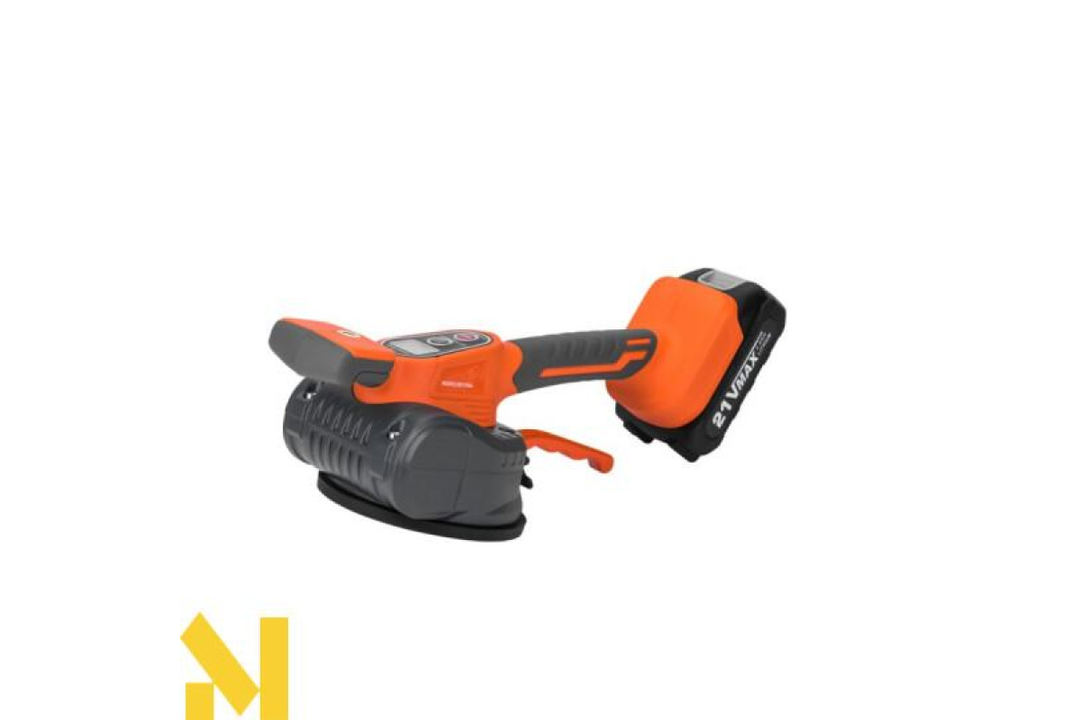 Присоска KD11966 оснащена потужним акумулятором 21 В, 2,0 Аг, що забезпечує тривалий час роботи без необхідності підключення до електромережі. Комплект включає два акумулятори та зручний футляр для зручного зберігання та перенесення.