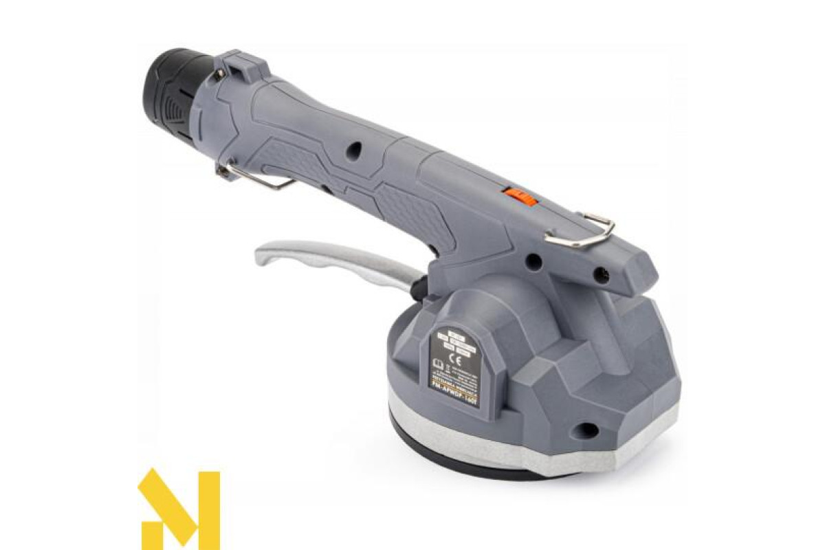 Дуже компактна і легка, дозволяє позиціонувати плитку за допомогою присоски (можливий підйом до 50 кг), а завдяки вібрації видаляє залишкові бульбашки повітря, які викликають потенційні тріщини, якщо вони знаходяться між клеєм і плиткою. Інтенсивність вібрації регулюється натисканням вимикача.