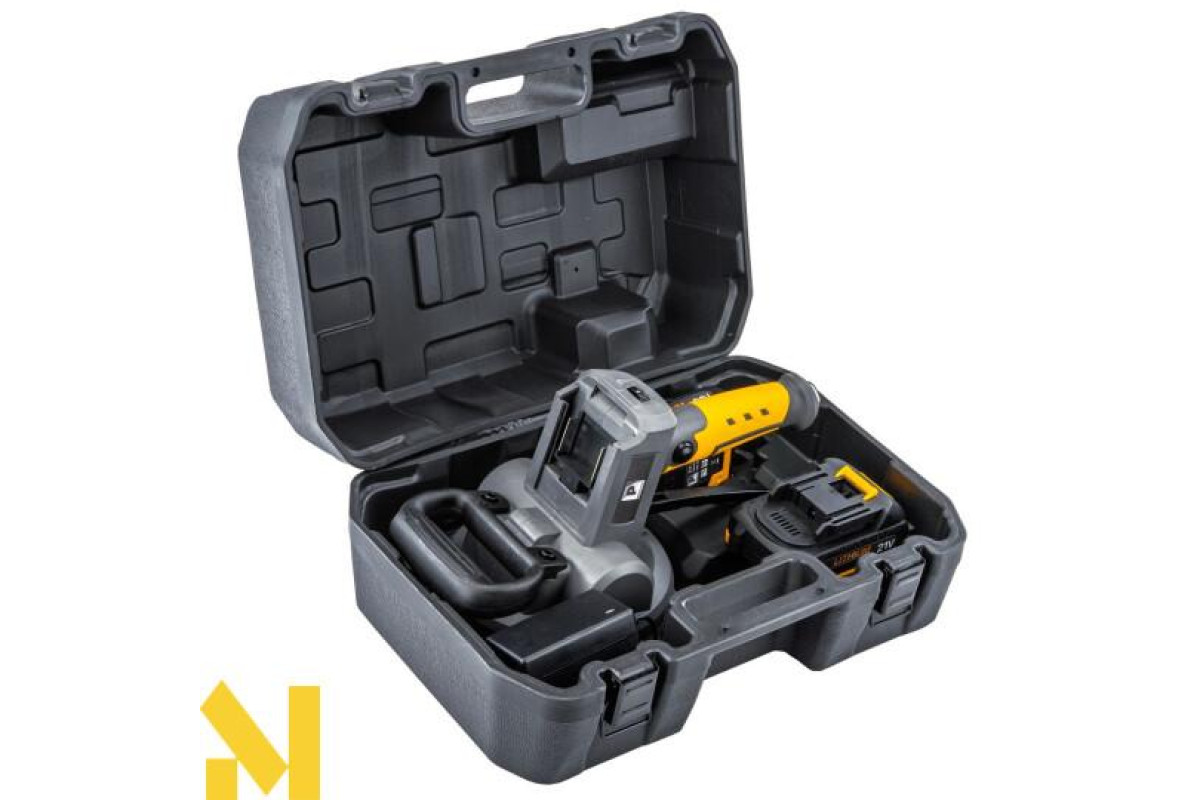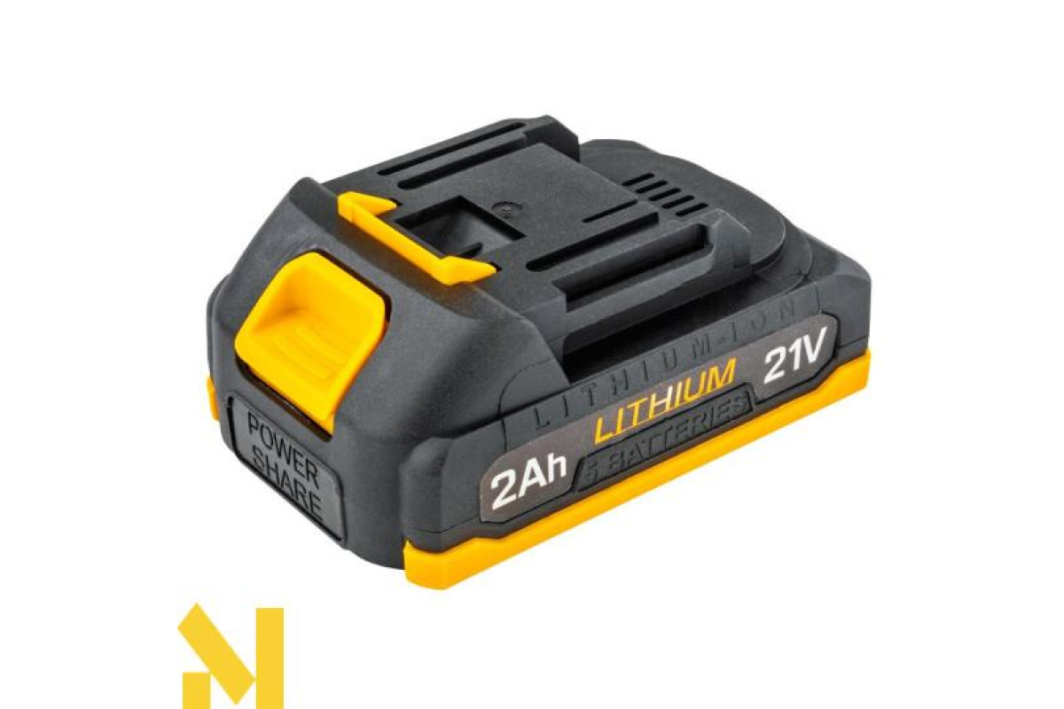 Літій-іонний акумулятор ємністю2000 мАг дозволяєвикористовувати пристрій тривалий час без необхідності частої зарядки. У комплект входятьдві батареї 21V/2Ah, які забезпечують безперебійну роботу - одна заряджається, а інша використовується.
