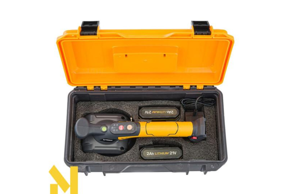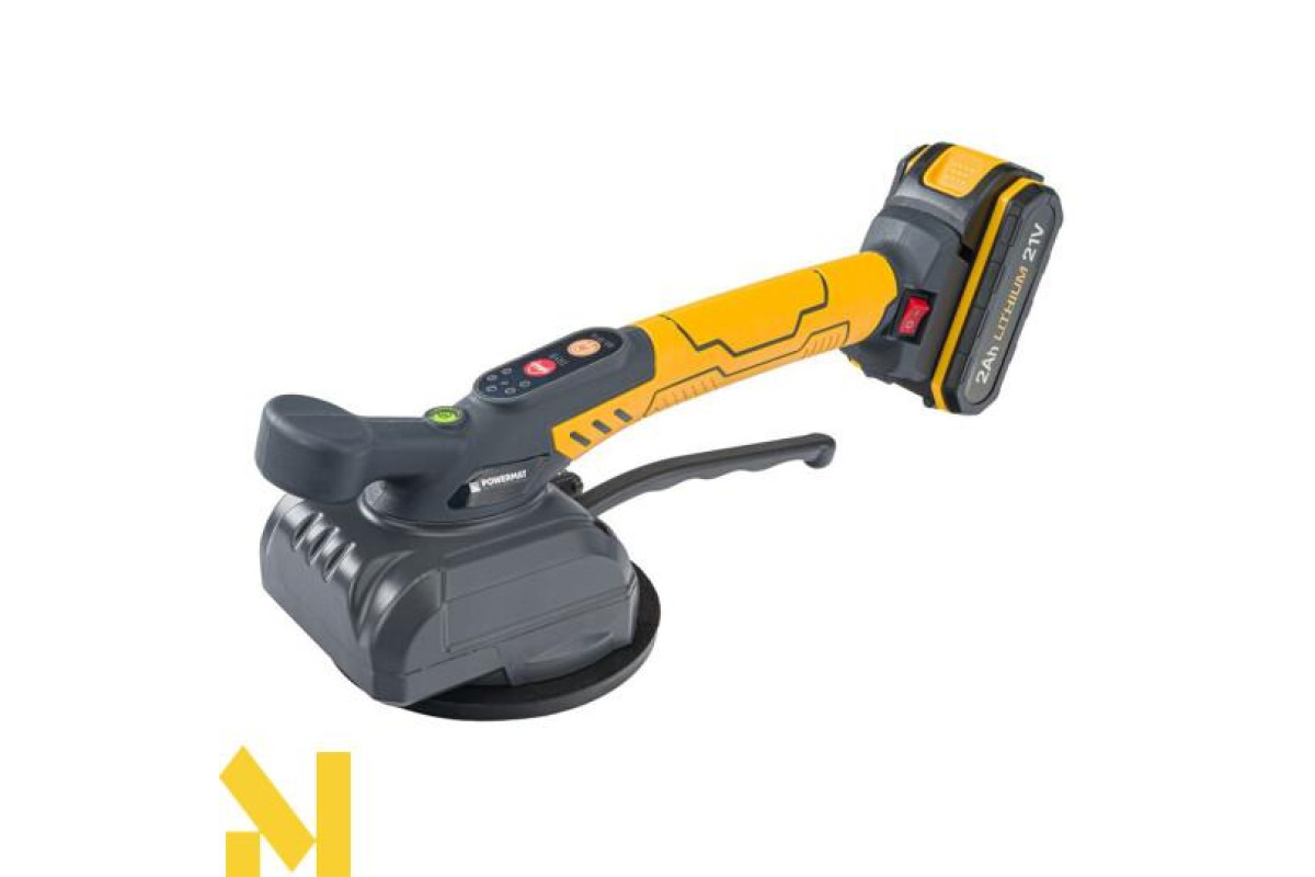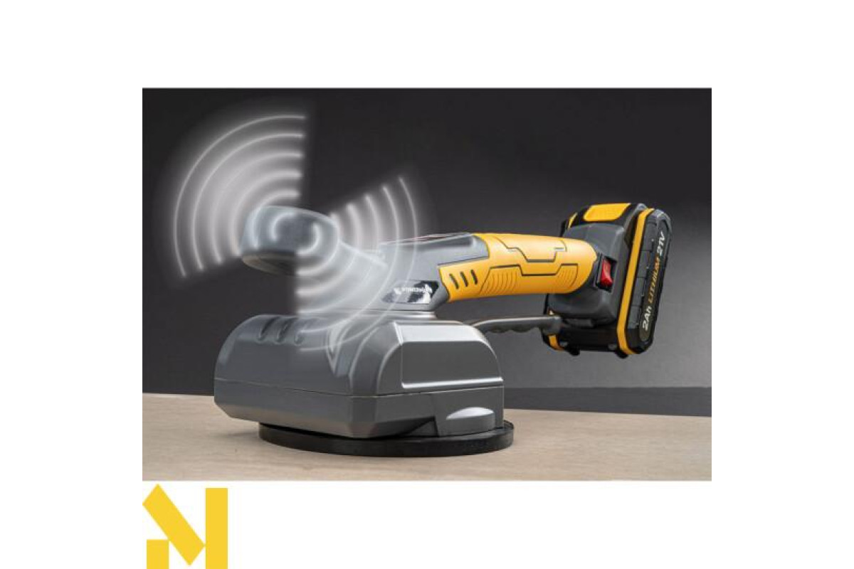 Присоска PM-APWDP-80T, що живиться від літієвої батареї 21 В, може використовуватися для внутрішніх і зовнішніх робіт. Вона замінює традиційну ручну роботу і допомагає уникнути проблем, пов'язаних з неправильним розподілом клею під плиткою і великими плитами. Спеціальна форма і подвійна ручка дозволяють врівноважити навантаження під час підйому та укладання плитки і краще керувати машиною. М'які на дотик вставки на ручці роблять її ергономічно зручною та безпечною. Вона дуже компактна і легка, дозволяє позиціонувати плитку за допомогою присоски (можливий підйом до 80 кг) і, завдяки вібрації, видаляє залишкові бульбашки повітря, які викликають потенційні тріщини, якщо потрапляють між клеєм і плиткою. Інтенсивність вібрації регулюється натисканням вимикача.