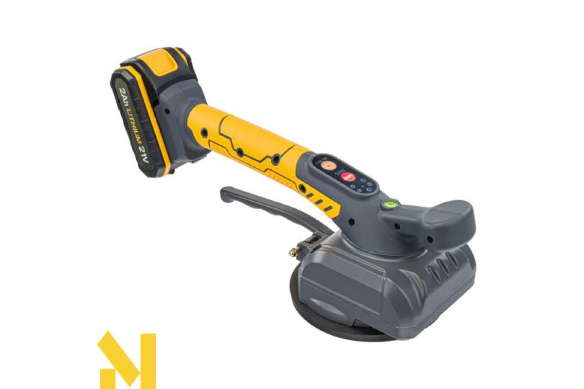 Забудьте про незручні важелі пилососа. Присоска має вбудований всмоктуючий насос, просто натисніть кнопку на панелі управління, і через деякий час плитка буде присмоктана.