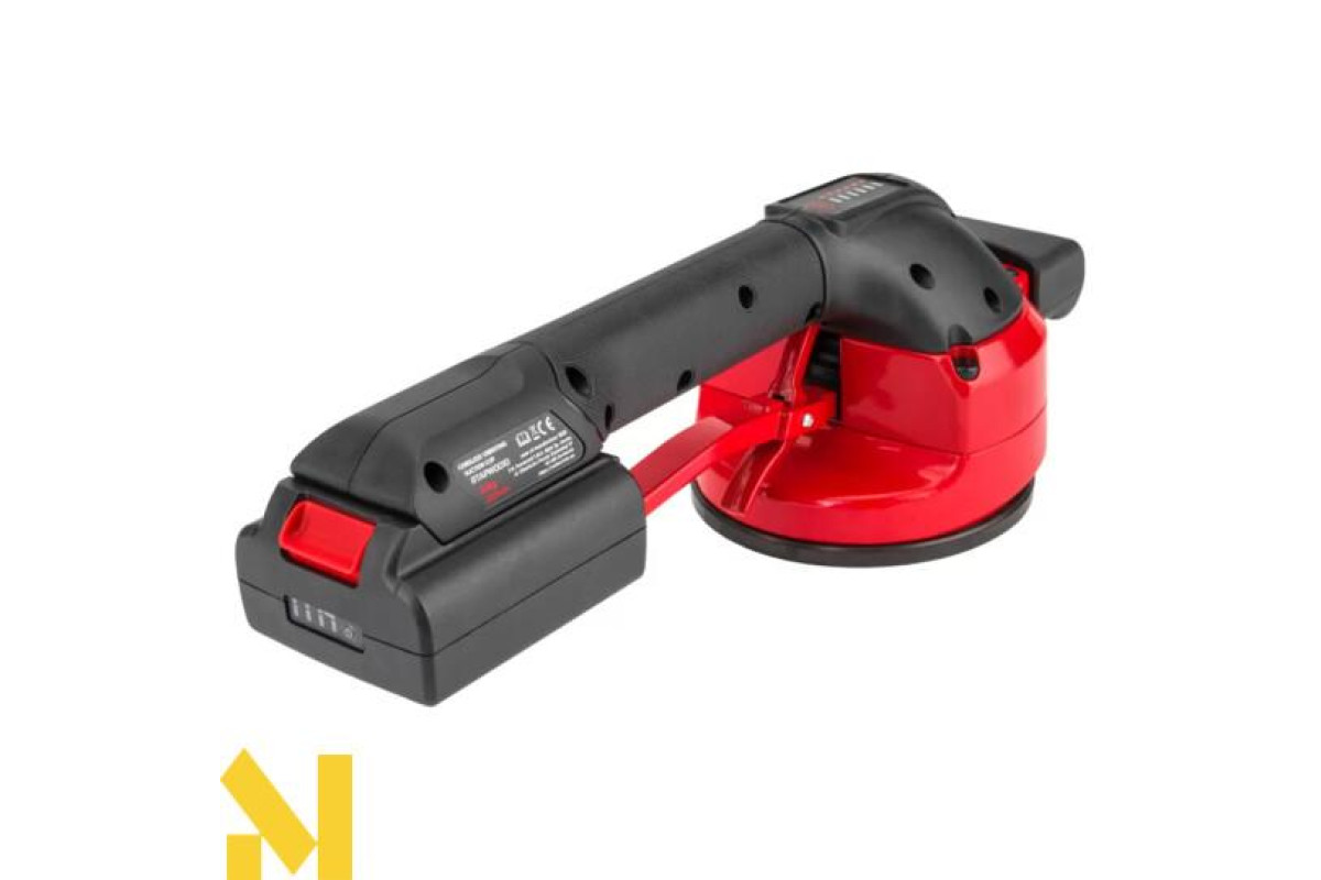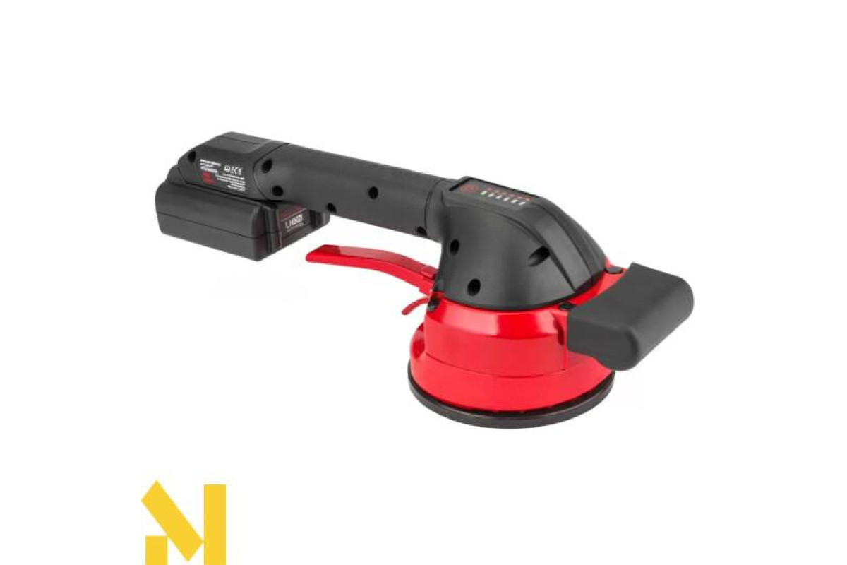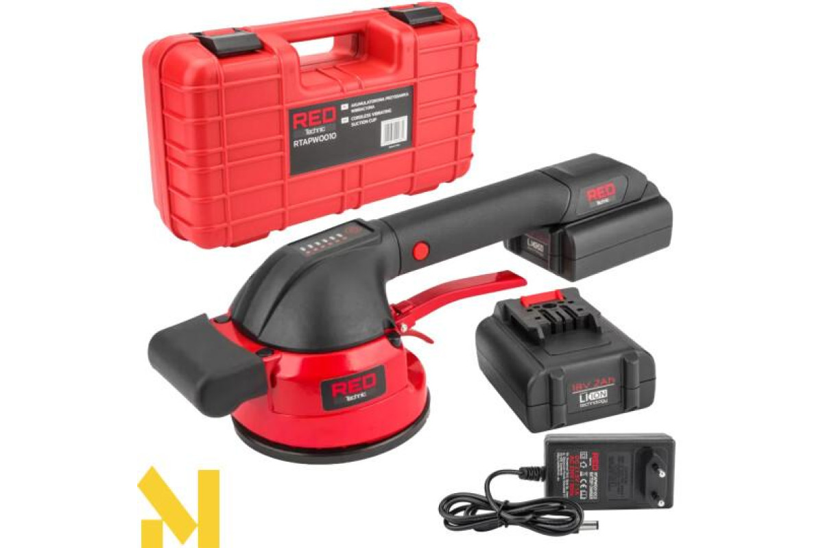 Присоска RTAPW0010 з живленням від літієвої батареї 18 В може використовуватися для внутрішніх і зовнішніх робіт. Вона замінює традиційну ручну роботу і допомагає уникнути проблем, пов'язаних з неправильним розподілом клею під плиткою і великими панелями. Спеціальна форма і подвійна ручка дозволяють врівноважити навантаження під час підйому і укладання плитки та краще керувати машиною. М'які на дотик вставки на ручці роблять її ергономічно зручною та безпечною. Вона дуже компактна і легка, дозволяє позиціонувати плитку за допомогою присоски (можливий підйом до 50 кг) і, завдяки вібрації, видаляє залишкові бульбашки повітря, які викликають потенційні тріщини, якщо вони потрапляють між клеєм і плиткою. Інтенсивність вібрації регулюється натисканням вимикача.
