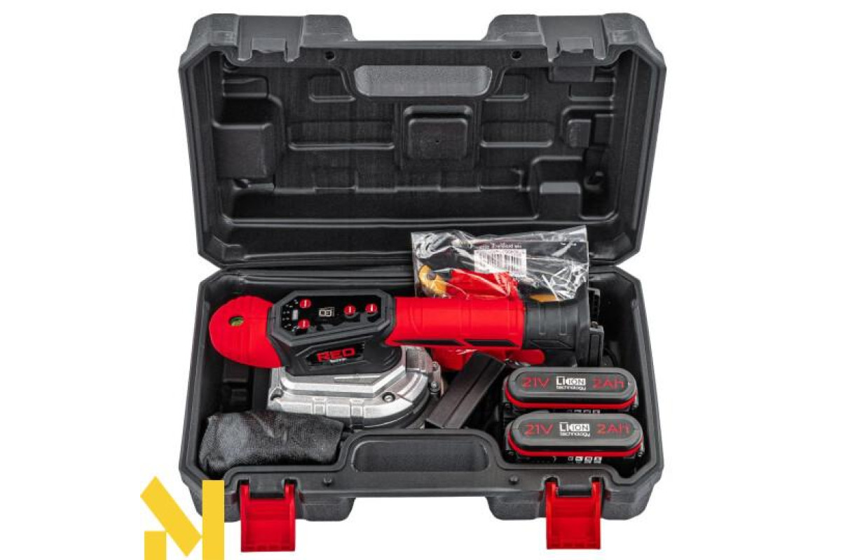 Пристрій живиться від двох літій-іонних акумуляторів 21 В ємністю 2 А·год, що забезпечує високу мобільність та тривалий час роботи без необхідності частої зарядки.