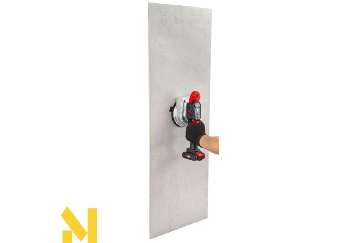 Присоска забезпечує адсорбційну здатність до 100 кг, що дозволяє безпечно піднімати та встановлювати велику та важку плитку без ризику зміщення чи поломки.