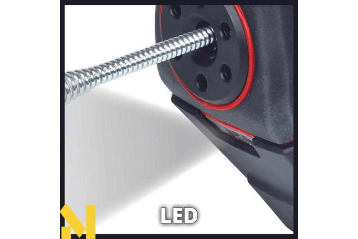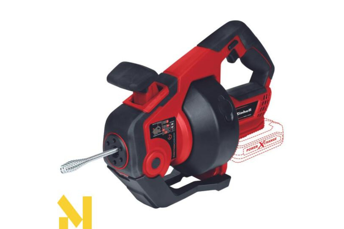 Будучи членом сімейства Power X-Change, акумуляторний пристрій для прочищення труб Einhell TE-DA 18/760 Li може використовуватись з усіма акумуляторами системи PXC. Двигун пристрою може обертати трос ліворуч і праворуч, що дозволяє проводити чищення труб дуже легко і без зусиль. Трос оцинкований і нечутливий до іржі. Для зручності очищення барабан має вхід, вихід та механізм блокування. Завдяки тросу діаметром 7 мм цей пристрій підходить для труб діаметром від 16 до 55 мм. В інструменті присутня підсвічування робочої області. Ергономічний дизайн та рукоятка Softgrip забезпечують виняткову легкість у користуванні. Акумулятор та зарядний пристрій із серії PXC можна придбати окремо.