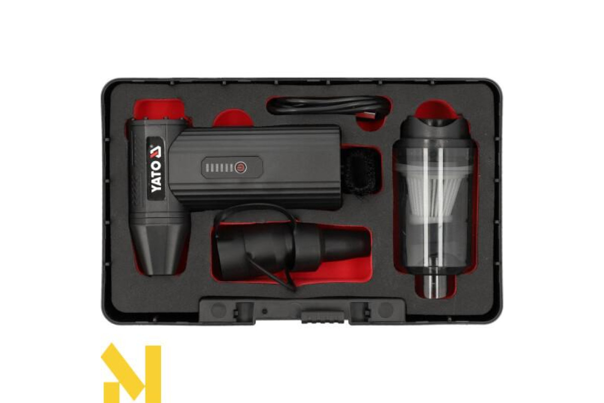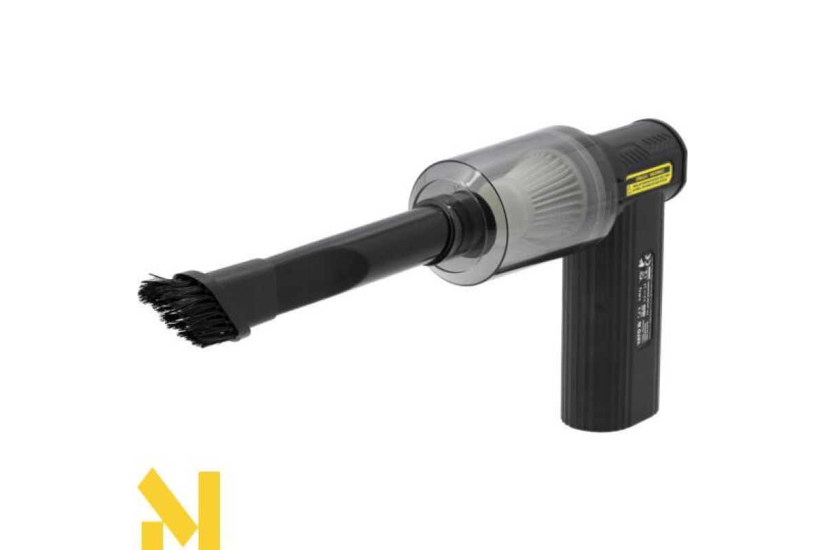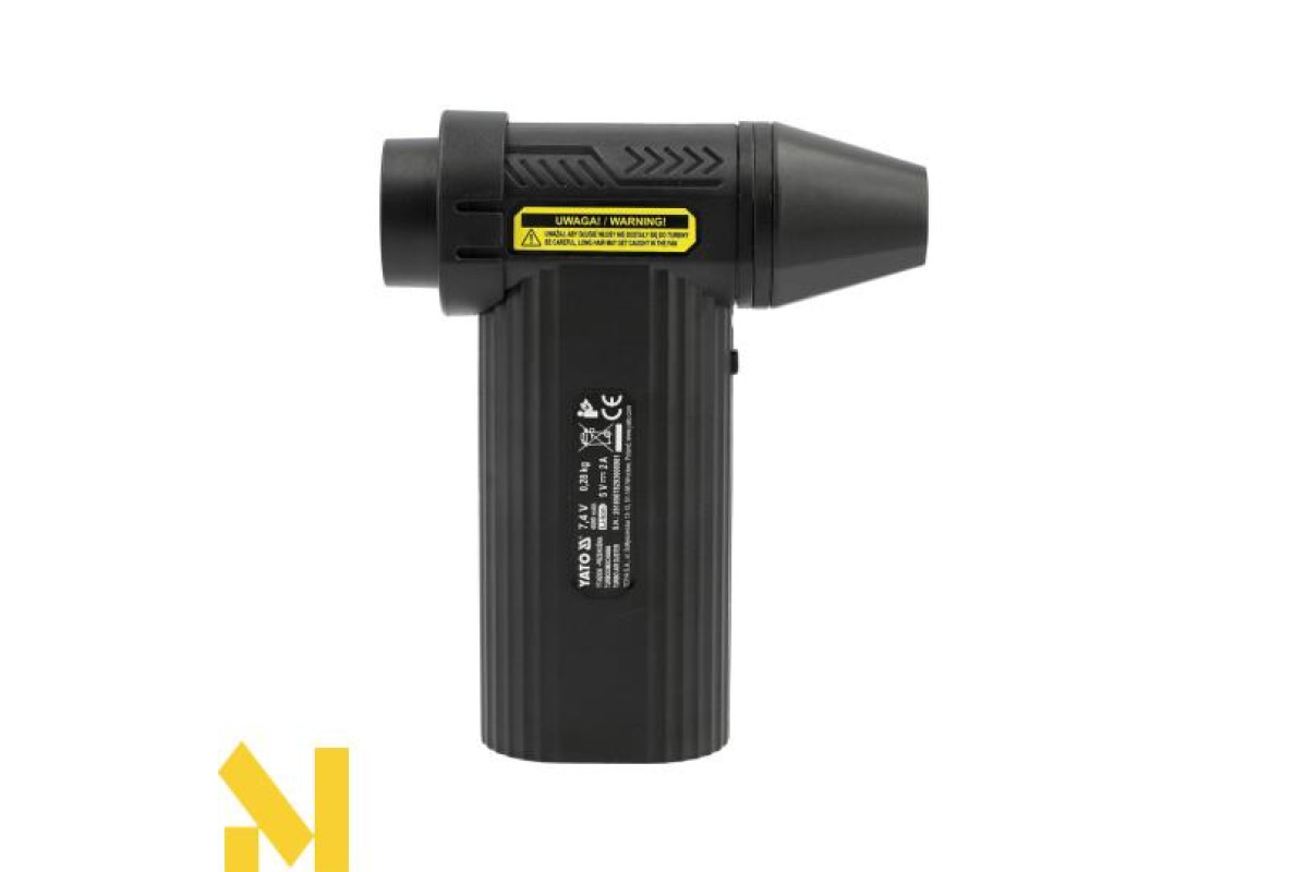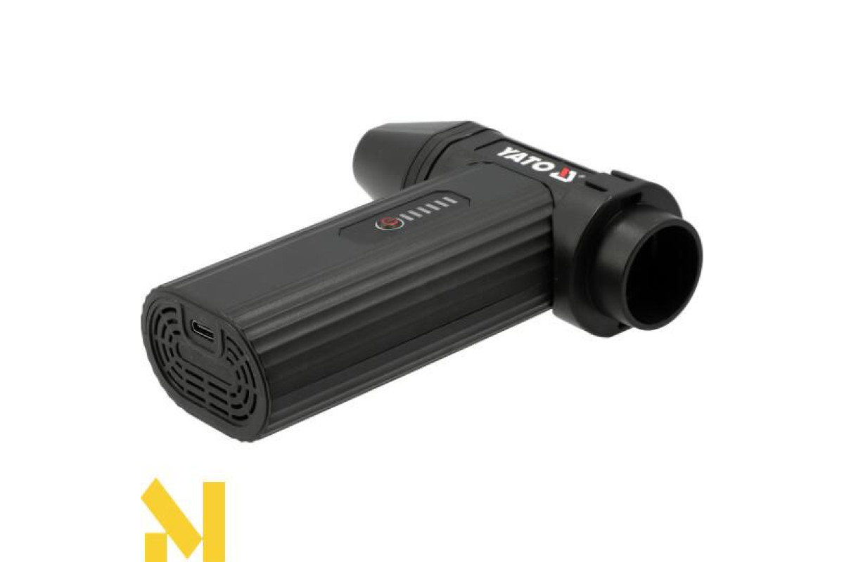 Використання літій-іонного акумулятора 7,2 В ємністю 4000 мА·год забезпечує триваліший час роботи та стабільні параметри потоку повітря. Триступеневе регулювання обертів дозволяє підібрати силу продувки відповідно до типу очищуваного елемента – від делікатної електроніки до механічних деталей. Пристрій заряджається через роз'єм USB-C. У комплекті є насадки для точного продування, насадка для пилососування та кейс.