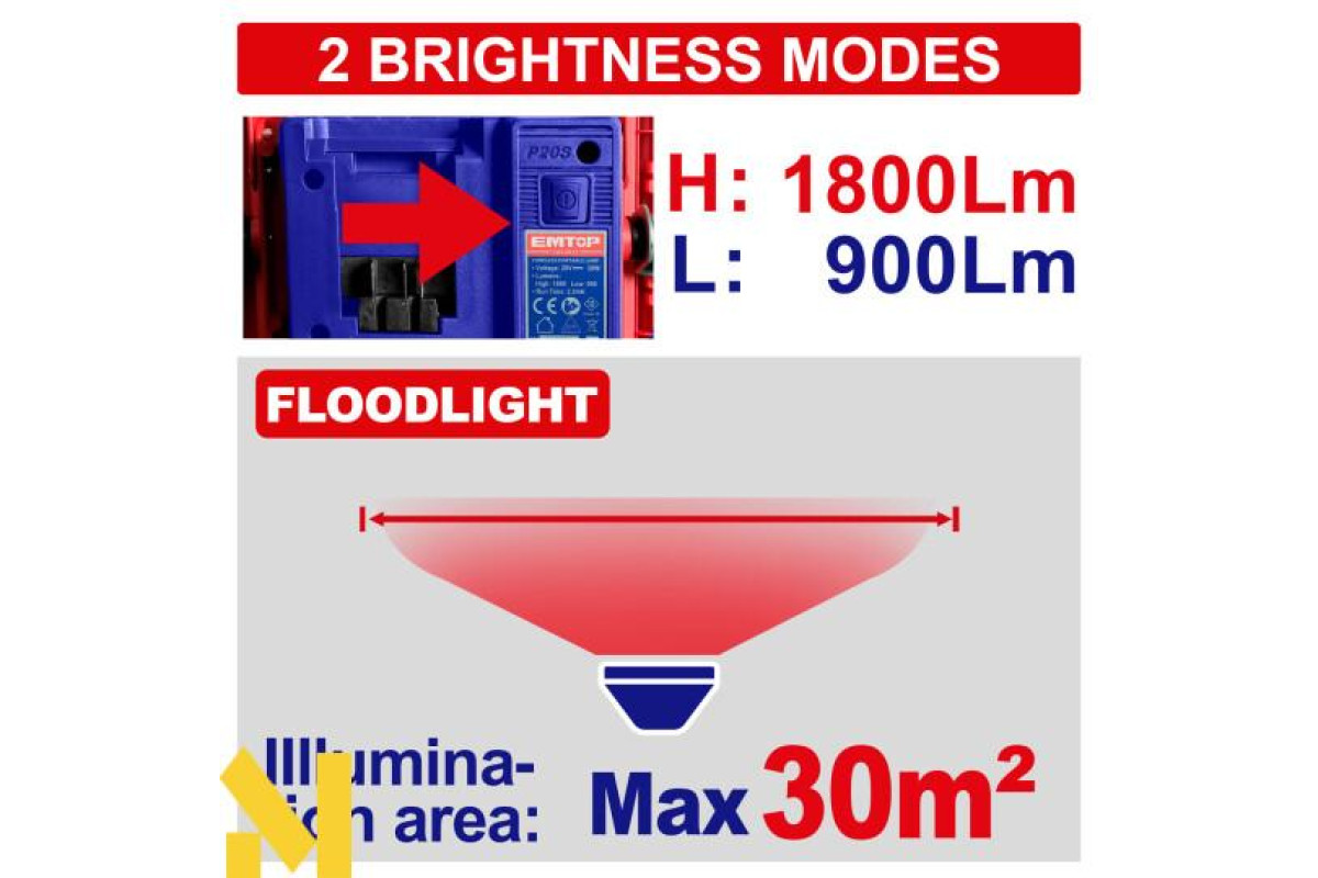 Світловий потік: | Високий: 1800 лм Низький: 900 лм |