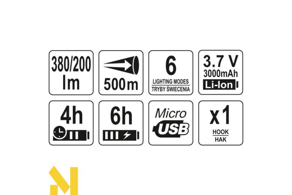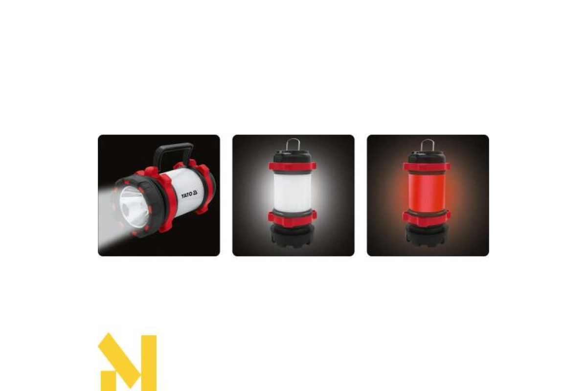 Багатофункціональний прожектор YATO YT-08547, завдяки своїй конструкції з 6 режимами роботи, ідеально підійде для кемпінгу, поїздки, роботи по дому або як сигнальна лампа для автомобіля. Основне світло забезпечує дальність 500 м та світловий потік 380 люмен. Оснащений потужним літій-іонним акумулятором 3,7 В 3000 мАг, він забезпечить мінімум 4 години роботи.