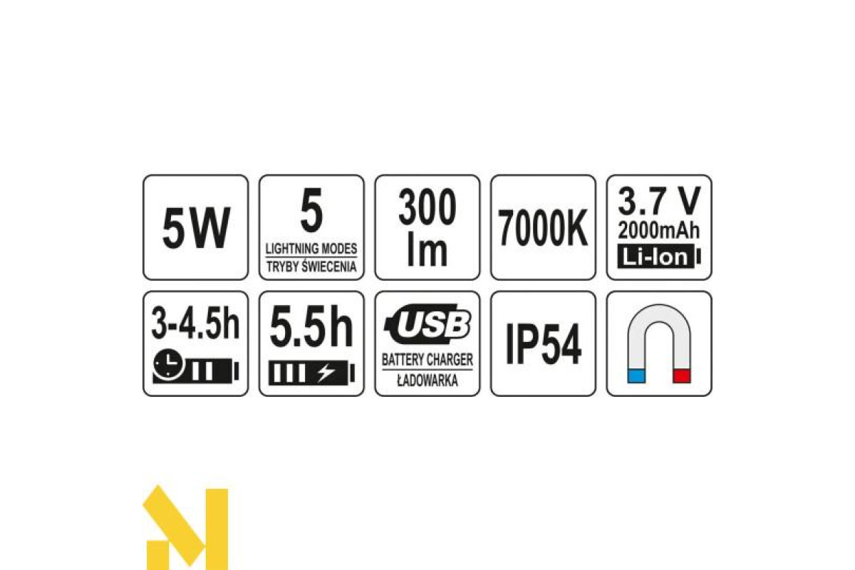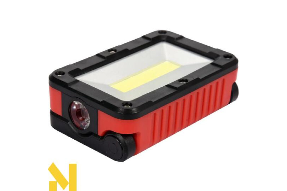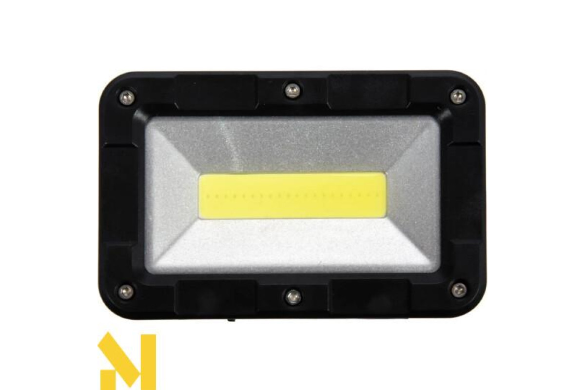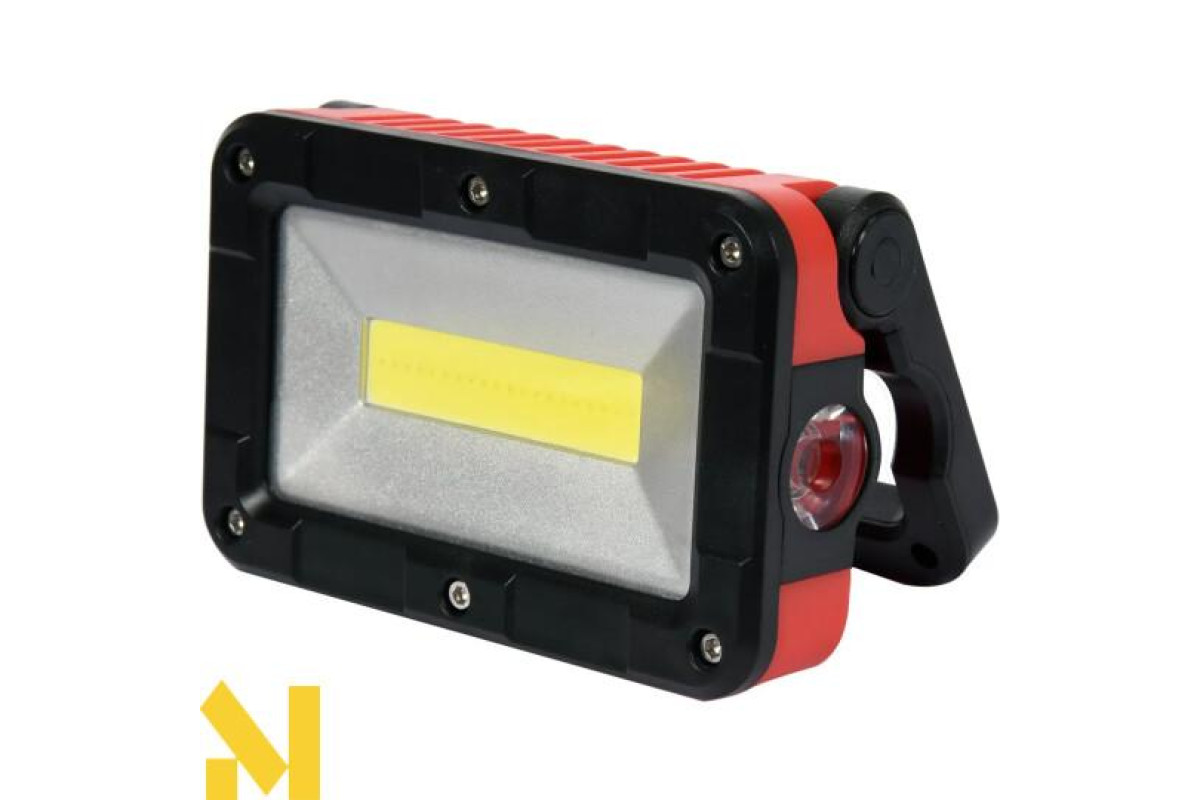 Легкий, перезарядний та переносний прожектор, що використовується для освітлення робочого місця в майстерні або на будівельному майданчику. Висока потужність забезпечить світловий потік 300 лм, а ємна батарея дозволить пропрацювати до 5,5 годин. Додаткова перевага - водонепроникність (IP54) та цілих 4 режими освітлення.