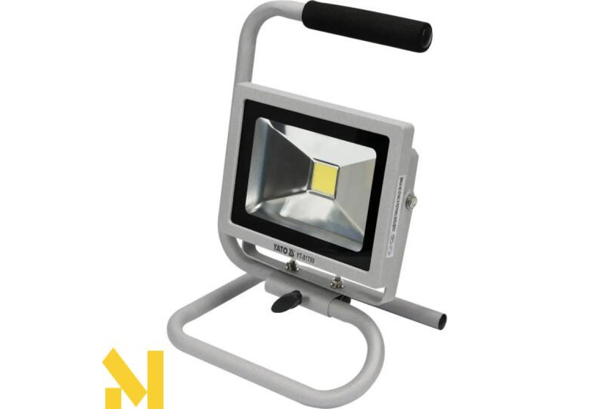 Стійка рама забезпечує безпечне використання, а контурна ручка дозволяє зручно переносити прожектор.