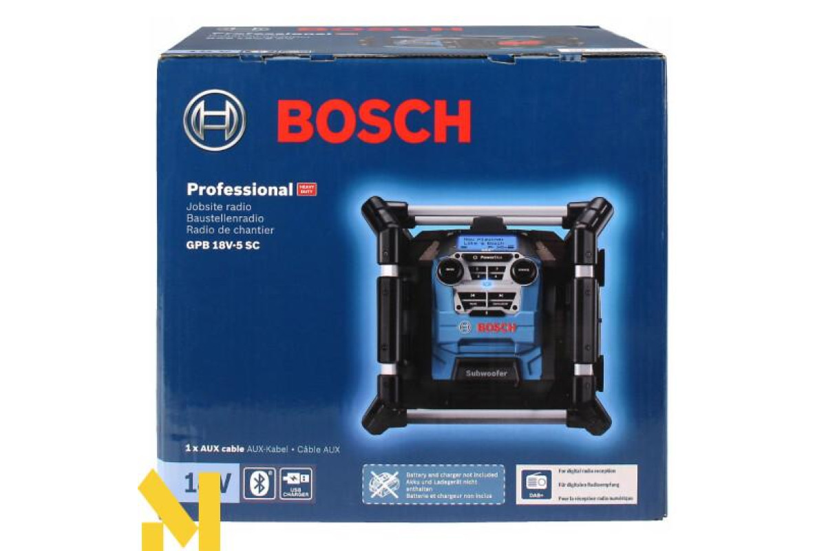 GPB 18V-5 SC Professional – прочный и полноценный музыкальный проигрыватель для тяжелых условий эксплуатации. Это прочное радио, совместимое с DAB+, Bluetooth®, FM и AUX, всегда воспроизводит нужную музыку, делая вашу работу приятной. Высокопрочная радиостанция GPB 18V-5 SC Professional оснащена защитным каркасом и предназначена для работы в тяжелых условиях. И яркие, и насыщенные. Впечатляющий звук этого радиоприемника обеспечивает четыре динамика общей мощностью 20 Вт и встроенный сабвуфер (20 Вт), обеспечивающий мощный басовый отклик.