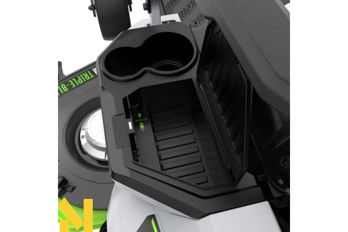 EGO POWER+ Z6 ZT5200E-L - потужний акумуляторний райдер одразу з 3 ріжучими ножами з професійного сегмента обладнання ТМ EGO. Оснащується одразу 4 новітніми безщітковими двигунами, завдяки чому має потужність еквівалентну 22 к.с. Ширина захвату деки становить 52" або 132 см. Площа косіння при використанні 4 акумуляторів EGO 56V ARC Lithium™ ємністю 10 А*год кожен становить 8000 кв.м, що значно перевершує найближчі аналоги. При використанні ж максимальних 6 акумуляторів площа вже складе 12000 кв.м. Висота косіння регулюється ступінчасто від 38 мм до 114 мм. Швидкість косіння залежно від густоти трави регулюється автоматично. Швидкість руху райдера регулюється від 8,1 км/год до 12,8 км/год;