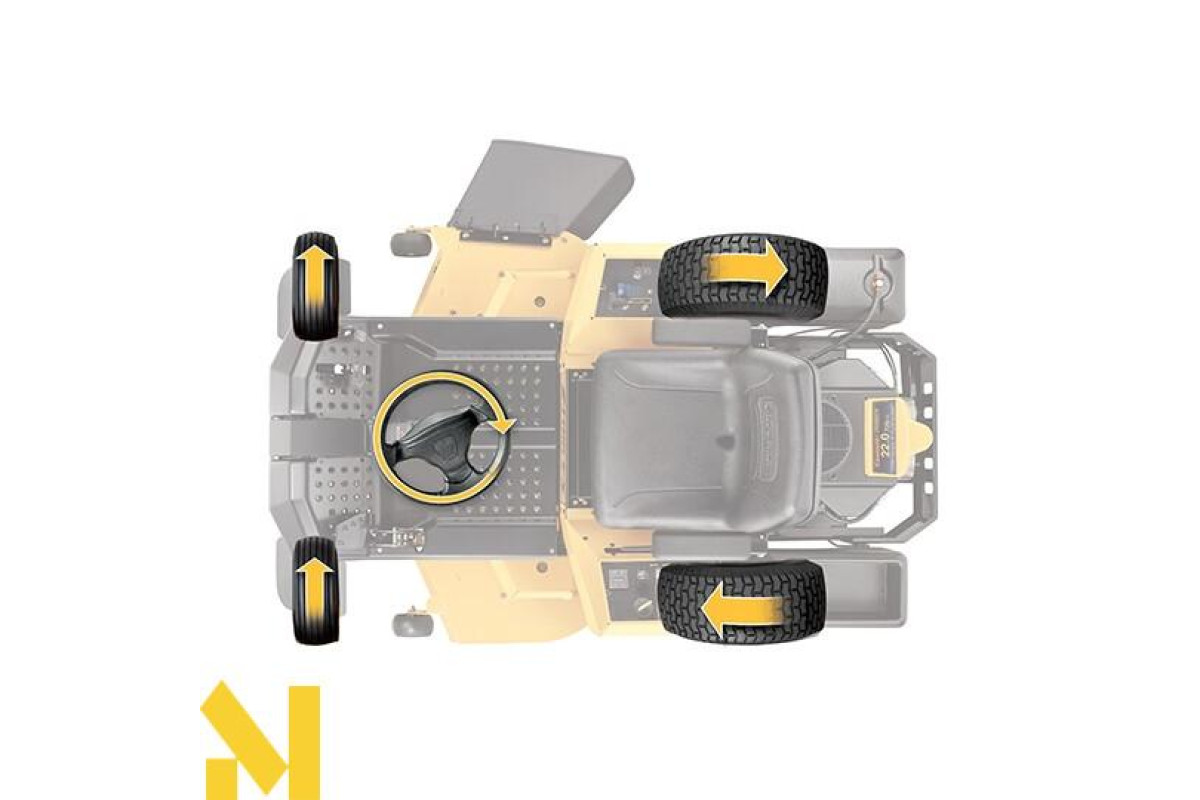 Мінітрактор Cub Cadet XZ2 107 здатний здійснювати розворот на 360 градусів навколо своєї осі, що дозволяє з легкістю маневрувати між різними посадками і будівлями. Силовим агрегатом служить надійний чотиритактний двигун Kawasaki з максимальною потужністю 17 л.с. Подвійна гідростатична трансмісія забезпечує просте і зручне управління, а також високу маневреність. Інноваційна технологія Synchro-Steer дозволяє управляти передніми колесами і незалежними задніми колесами.