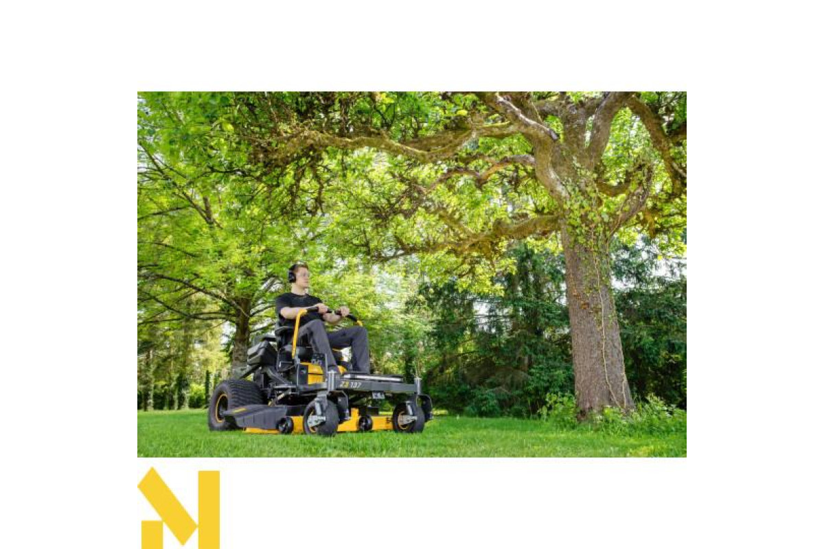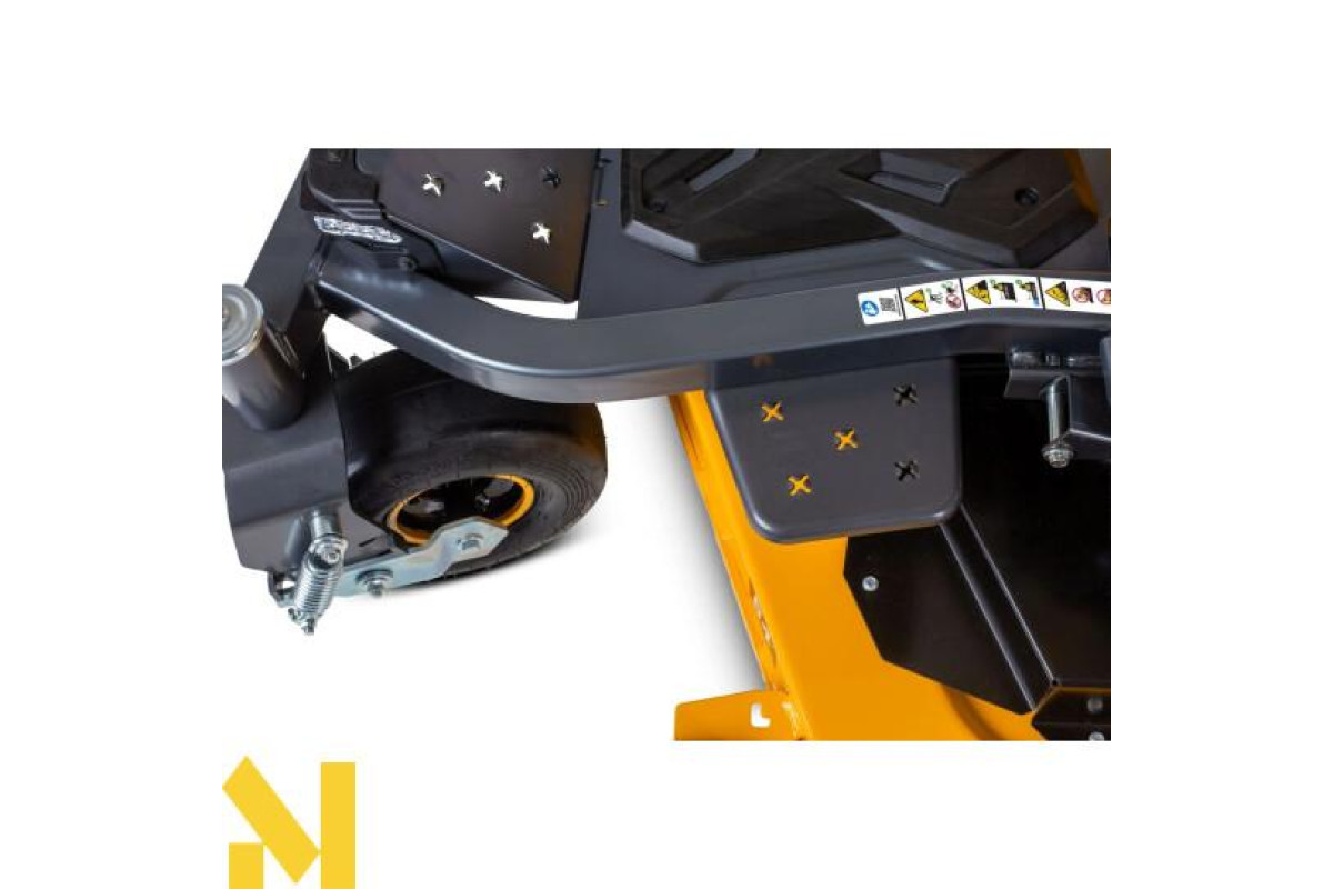 Технологія Zero-Turn із танковим керуванням дозволяє повертати на місці. Це значно підвищує маневреність і економить час під час роботи біля дерев, кущів або парканів.