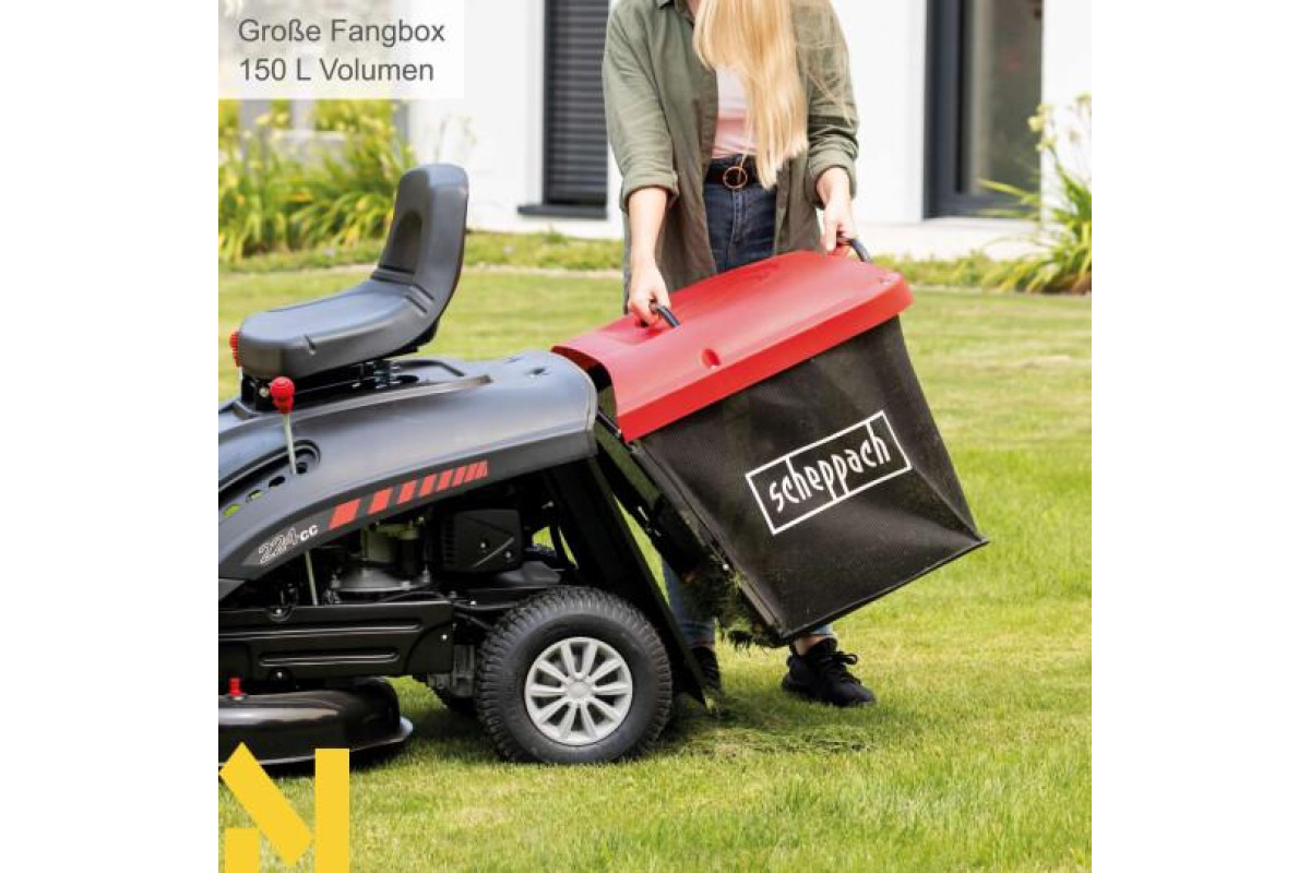 Якщо вам доводиться стригти великі газони, звичайна газонокосарка швидко вийде з ладу. У цьому разі ідеальним рішенням стане газонокосарка на колісному ходу. З їздовою газонокосаркою MR224-61 від Scheppach навіть великі газони можна легко і зручно підстригати до потрібної висоти завдяки ширині стрижки 61 см - без зусиль і фізичних зусиль.