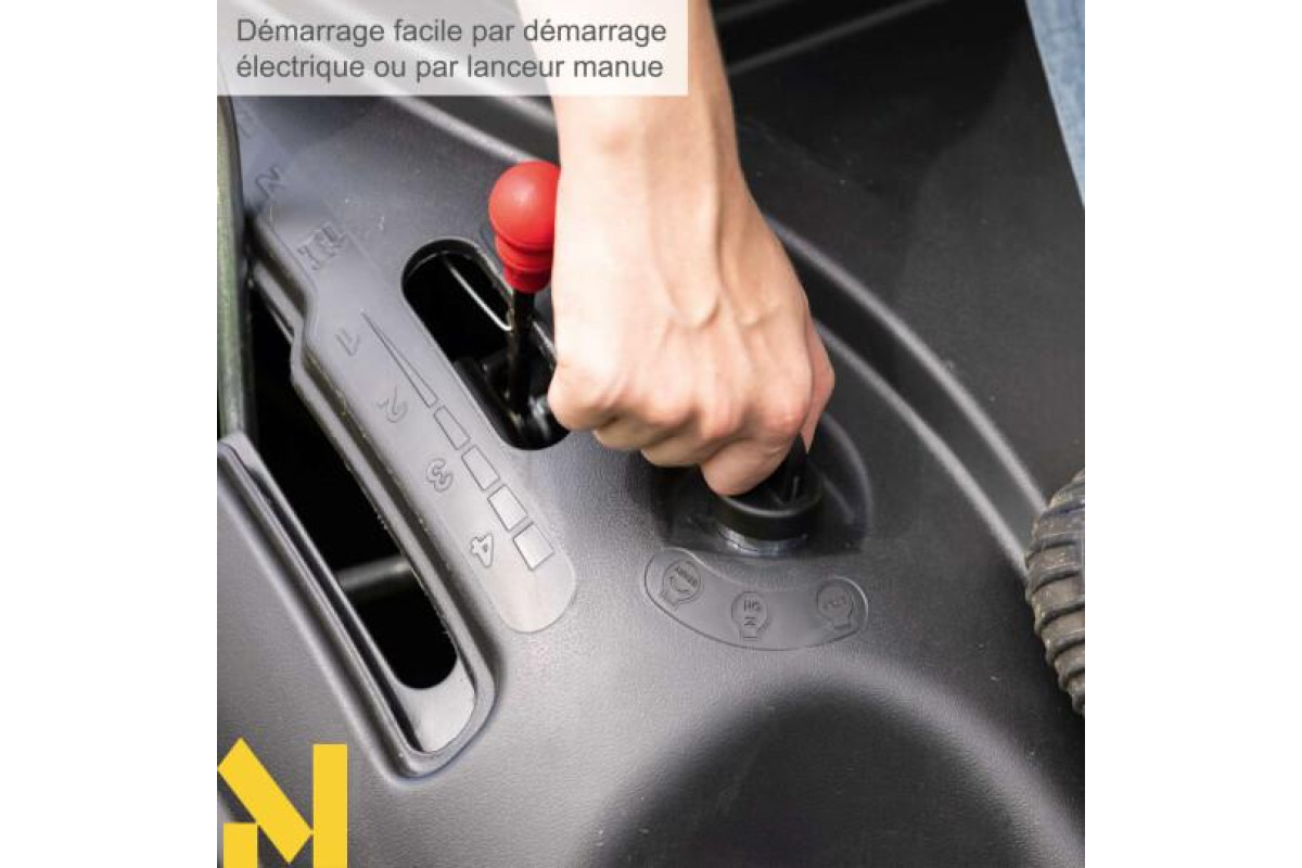 Газонокосарка-всюдихід має 4 передачі вперед і передачу заднього ходу: це забезпечує максимальну швидкість руху 4,6 км/год. Газонокосарку також можна легко ввімкнути або вимкнути вручну.