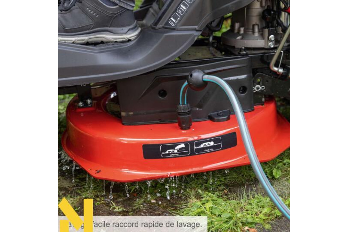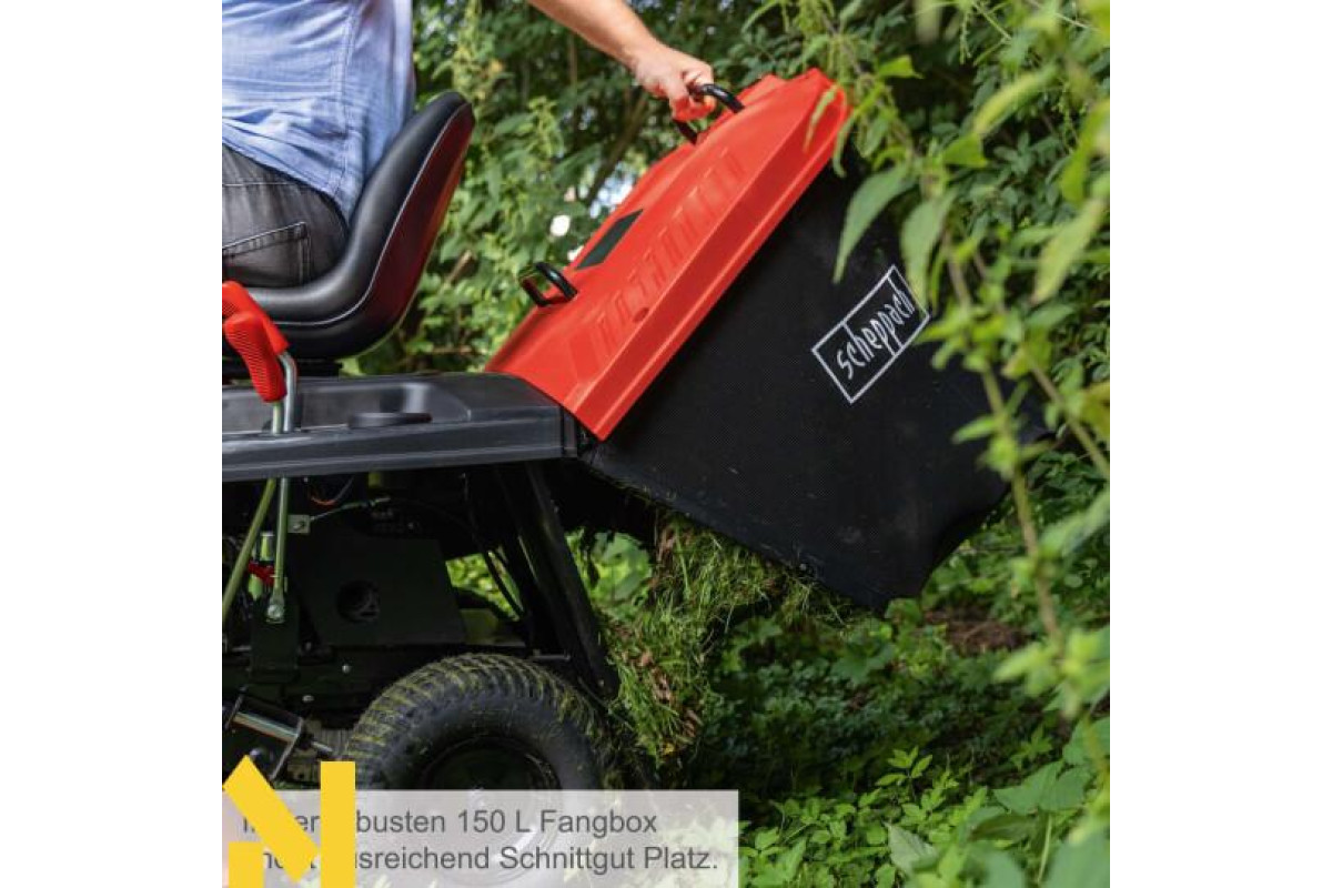 Райдер бензиновий Scheppach MR230-61 підходить для швидкої та ефективної стрижки великих газонів площею до 2600 м2. Дуже велика ширина скошування 61 см і потужний 4-тактний бензиновий двигун 4,4 кВт і 6,0 к.с. забезпечують швидкий хід роботи. Чотири передачі вперед і задній хід забезпечують комфортне водіння і маневрування. Завдяки габаритній ширині всього 740 мм газонокосарка проходить через вузькі проходи.