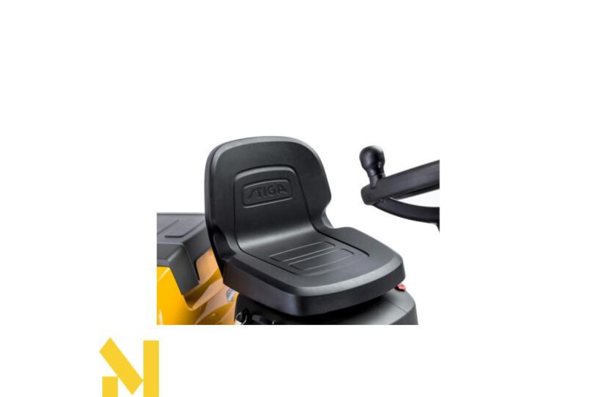 Ви можете вибрати агрегати розміром 95, 105 і 110 см, які можна замінити без інструментів завдяки системі STIGA Quickflip. - Найвищий комфорт для водія забезпечується ергономічним сидінням з високою спинкою. Гідравлічна ножна педаль забезпечує постійний контроль швидкості руху без необхідності перемикання передач вручну.