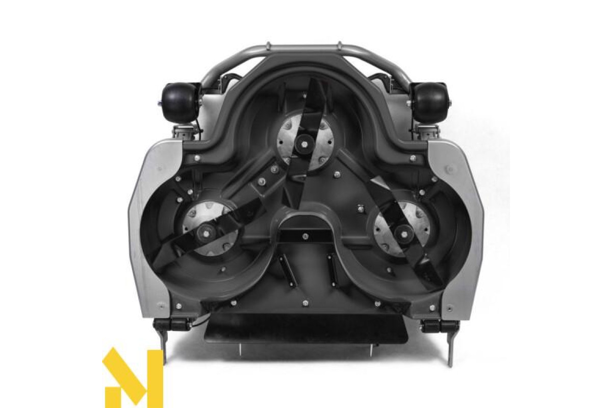 Гнучка передня дека з великою шириною захвату. Кращий огляд, прохідність та косіння навіть на нерівних поверхнях; Механізм Quick Flip для легкого чищення; та можливість вибору ширини косіння від 95 см до 125 см.