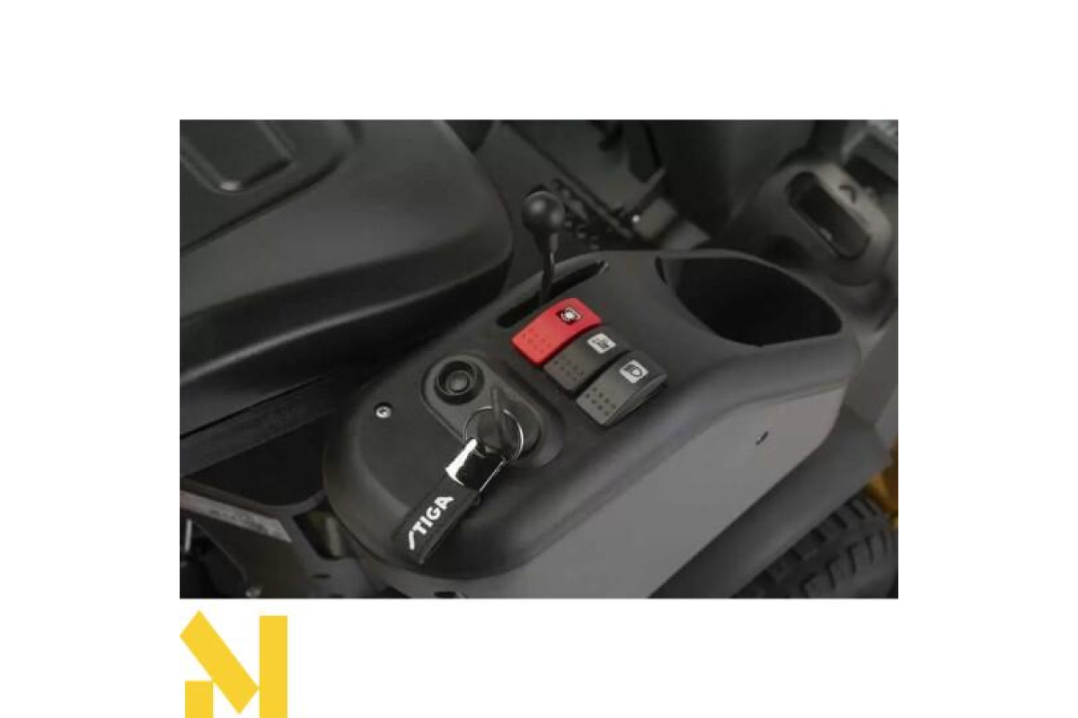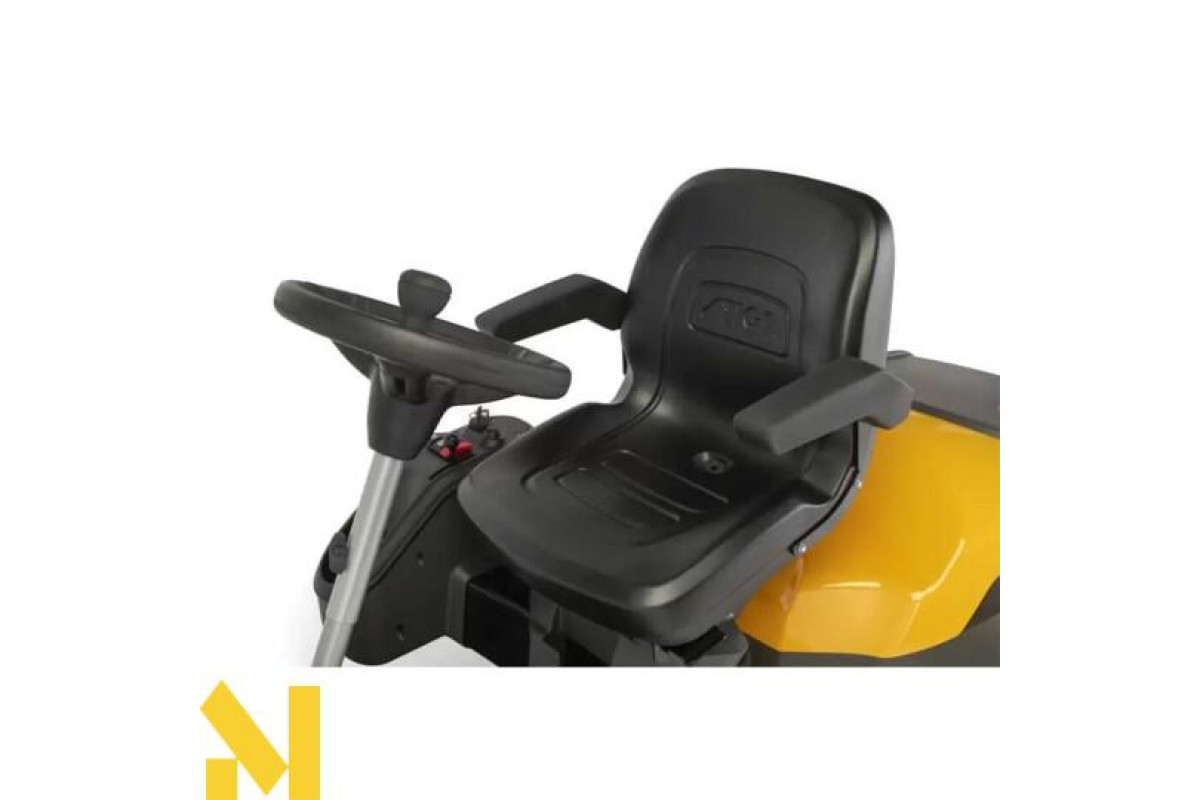 Ця передня косарка також зручна, з ергономічним сидінням з опорою для нижньої частини спини і великим простором для ніг.
