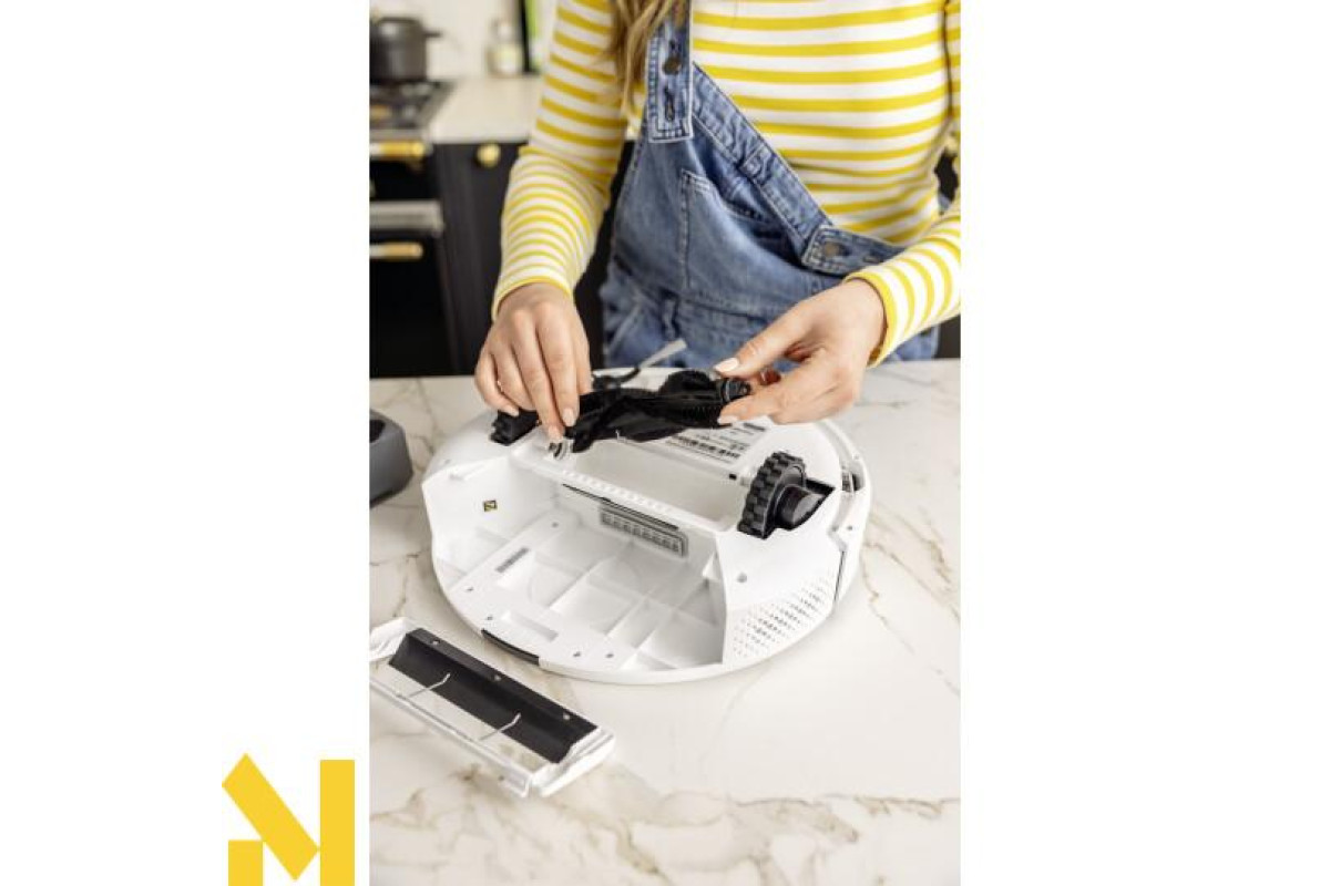 Вивільняє час для улюблених занять: інтелектуальний робот-пилосос RCV 2 бере на себе всю турботу про збирання підлоги. Достатньо включити апарат, і він в автономному режимі систематично очистить тверді покриття для підлоги і килими з коротким ворсом. Потужна всмоктувальна турбіна в поєднанні з основними і боковими щітками, що обертаються, забезпечує очищення всієї площі підлоги, включаючи крайові і кутові ділянки, від сухого сміття, що збирається у вбудований сміттєзбірник.