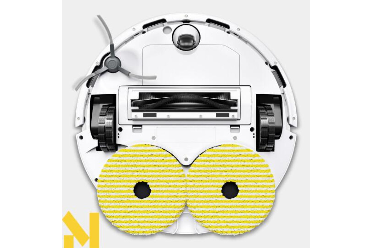 Для вологого прибирання передбачені два обертові диски з падами з мікроволокна, при цьому один з них висувається до краю, що дозволяє ефективно видаляти навіть стійкі забруднення.