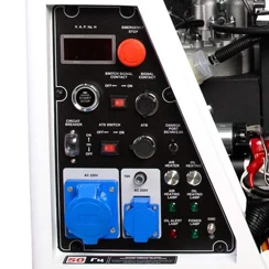 ![]() | Панель управления: интуитивно простая, доступна неопытному пользователю. На нее выведены кнопка запуска генератора, основные индикаторы работы, розетки 2 шт на 16 А и 32 А, предохранитель на розетки, заземление, счетчик моточасов, вольтметр. |