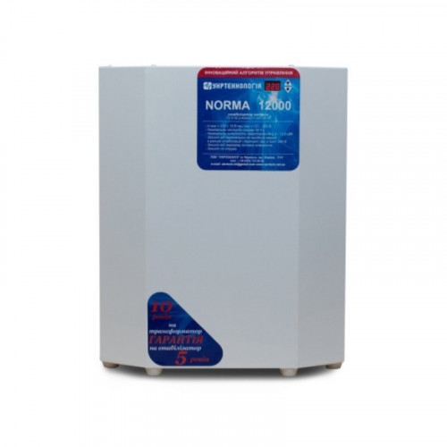 Стабилизатор Укртехнология НСН - 12000 NORMA - N (HV) предназначен для автоматической регулировки напряжения питания нагрузки в заданных пределах. Типичные потребители: частный дом или дача, трех- четырехкомнатная квартира, офис до 15-20 рабочих мест, точечные потребители средней мощности промышленных цехов и предприятий.