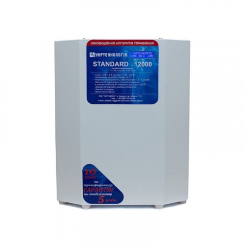 Стабилизатор Укртехнология НСН - 12000 STANDARD предназначен для автоматической регулировки напряжения питания нагрузки в заданных пределах. Типичные потребители: частный дом или дача, трех- четырехкомнатная квартира, офис до 15-20 рабочих мест, точечные потребители средней мощности промышленных цехов и предприятий.