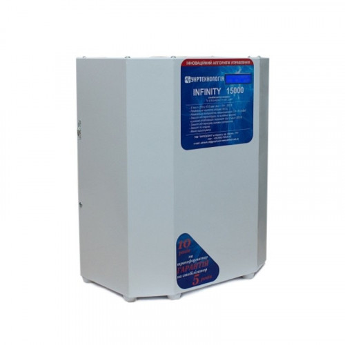 Стабилизатор Укртехнология НСН - 15000 INFINITY предназначен для автоматической регулировки напряжения питания нагрузки в заданных пределах. Типичные потребители: частный дом или дача, трех- четырехкомнатная квартира, офис до 15-20 рабочих мест, точечные потребители средней мощности промышленных цехов и предприятий.