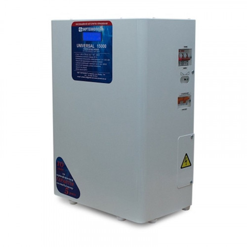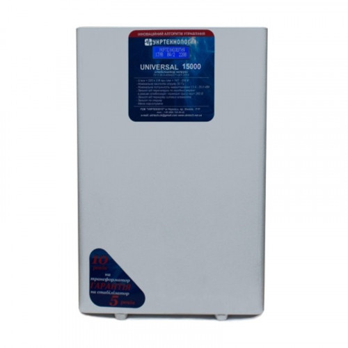 Стабилизатор Укртехнология НСН - 15000 UNIVERSAL (NV) предназначен для автоматической регулировки напряжения питания нагрузки в заданных пределах. Типичные потребители: частный дом или дача, трех- четырехкомнатная квартира, офис до 15-20 рабочих мест, точечные потребители средней мощности промышленных цехов и предприятий.