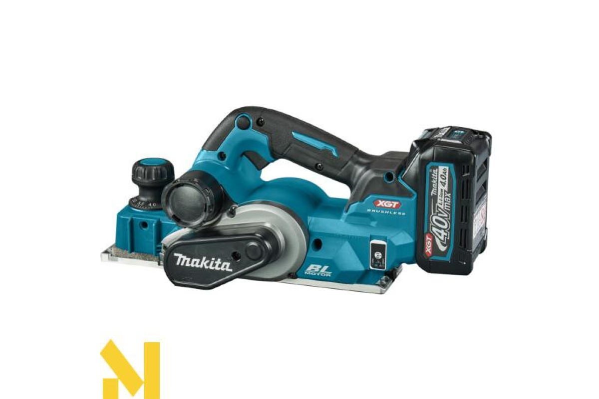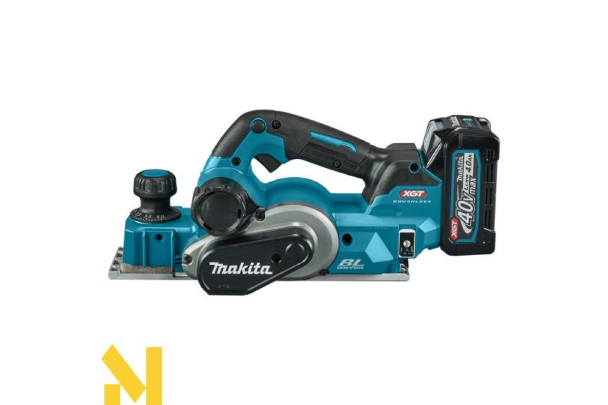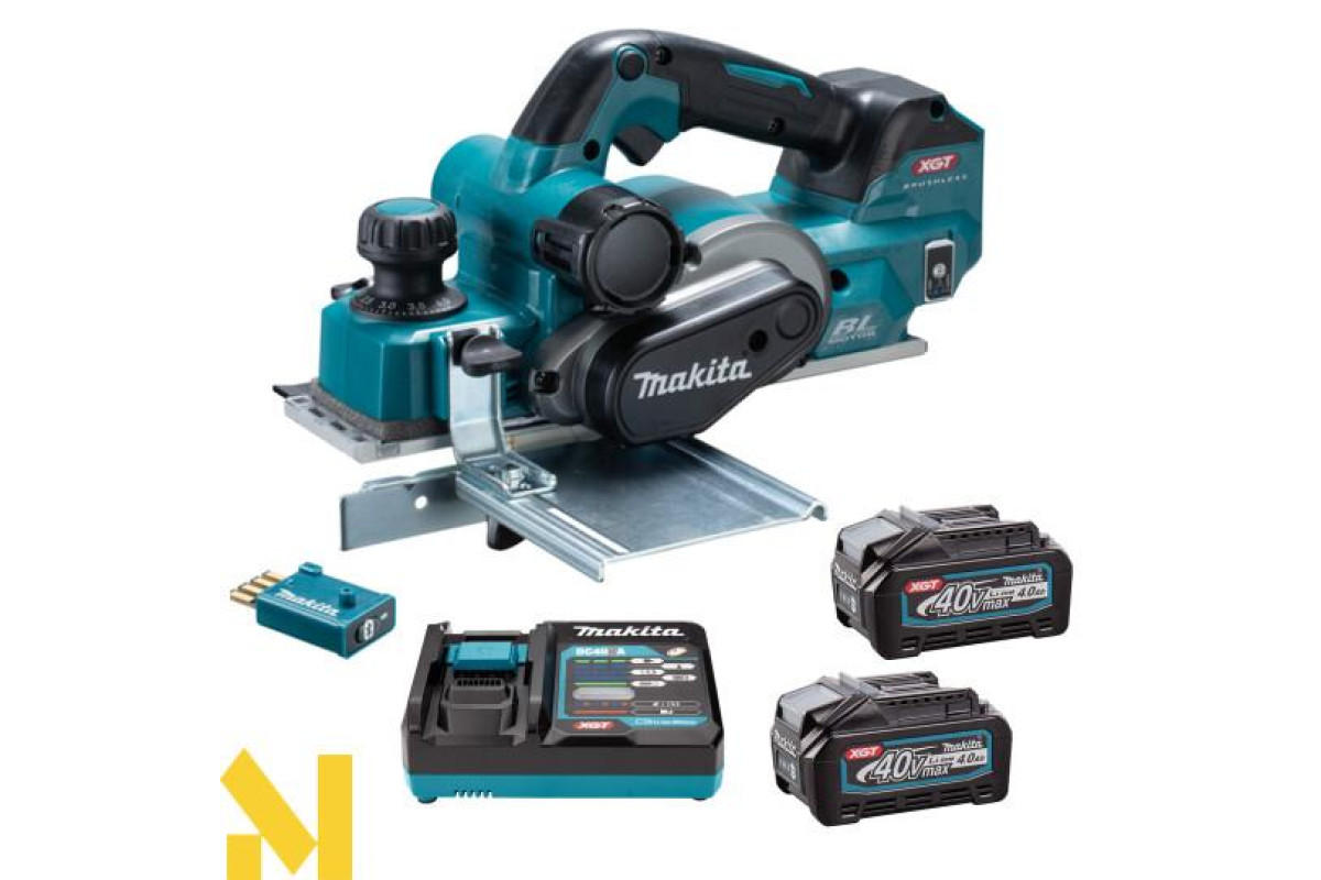Рубанок акумуляторний Makita KP001GM20220 оснащений потужним безщітковим двигуном, що живиться від акумулятора серії XGT з максимальною напругою 40 В, що дозволяє пристрою досягати швидкості 15000 об/хв. Пристрій оснащений технологією автоматичного регулювання крутного моменту, яка автоматично регулює швидкість і крутний момент під час роботи, а також функцією бездротової системи автоматичного запуску, яка дозволяє з'єднати пилосос і електроінструмент бездротовим зв'язком через Bluetooth, щоб пилосос запускався разом із запуском електроінструменту. Рубанок Makita KP001GM202 оснащений електронним гальмом для підвищення продуктивності та безпеки.