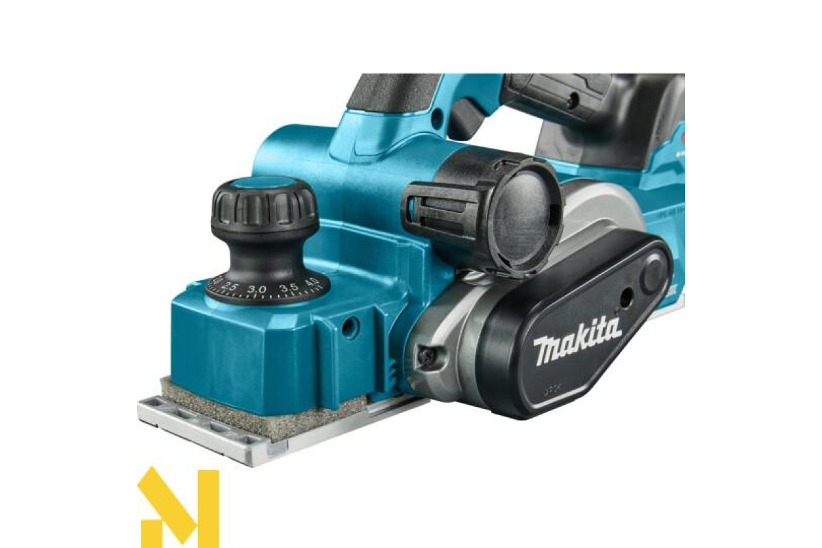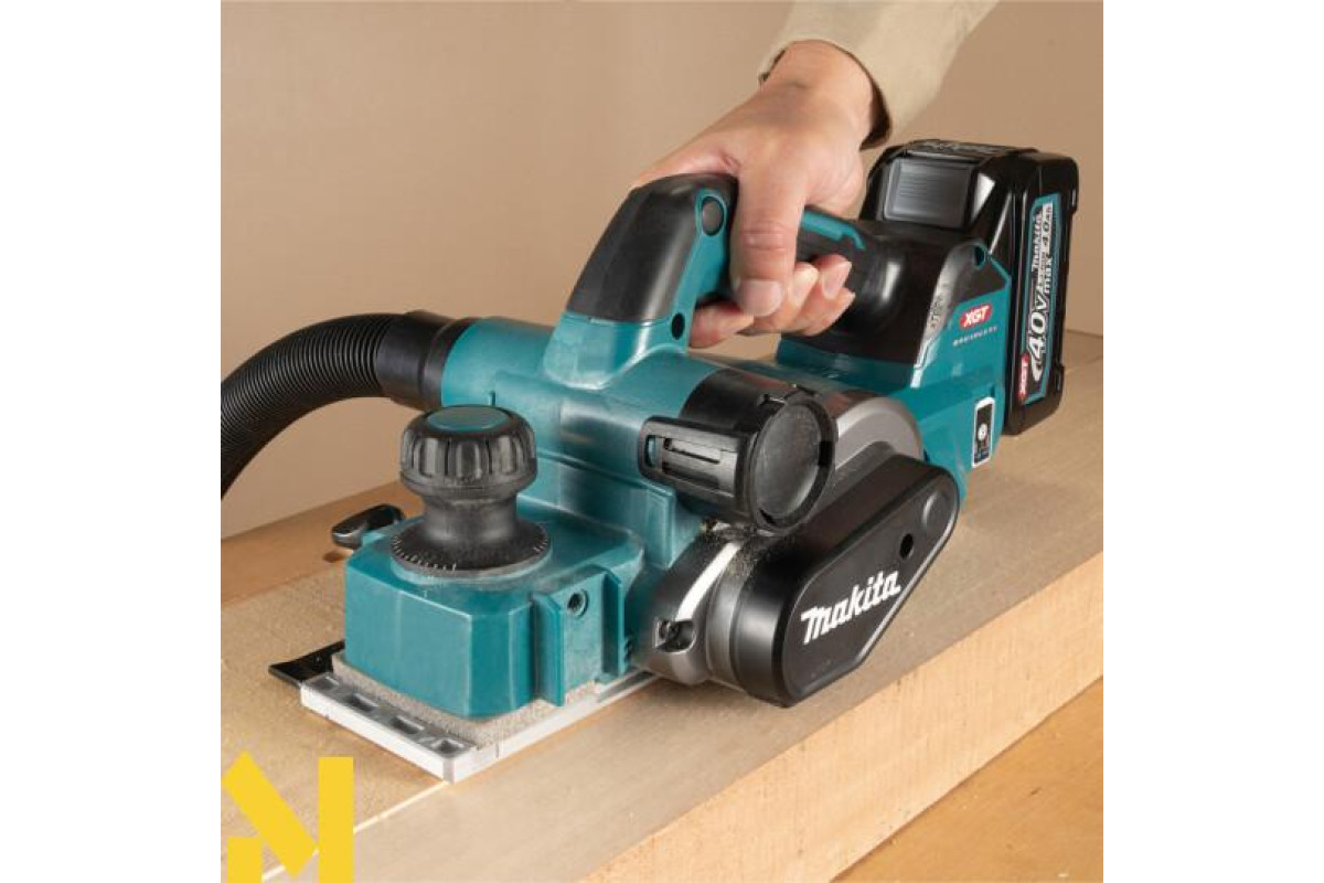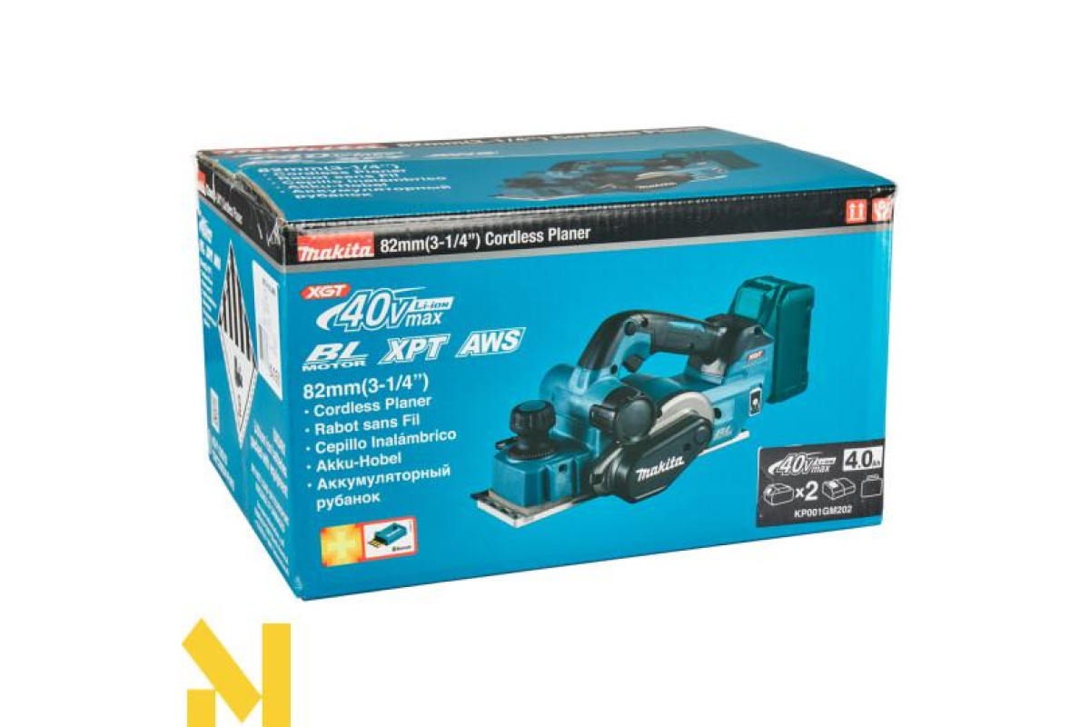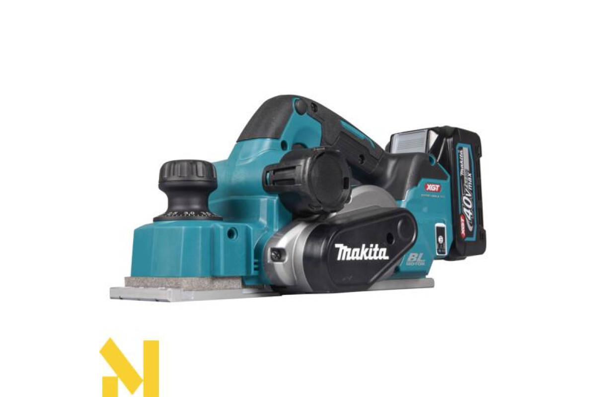 Рубанок акумуляторний Makita KP001GM20220 оснащений потужним безщітковим двигуном, що живиться від акумулятора серії XGT з максимальною напругою 40 В, що дозволяє пристрою досягати швидкості 15000 об/хв. Пристрій оснащений технологією автоматичного регулювання крутного моменту, яка автоматично регулює швидкість і крутний момент під час роботи, а також функцією бездротової системи автоматичного запуску, яка дозволяє з'єднати пилосос і електроінструмент бездротовим зв'язком через Bluetooth, щоб пилосос запускався разом із запуском електроінструменту. Рубанок Makita KP001GM202 оснащений електронним гальмом для підвищення продуктивності та безпеки.