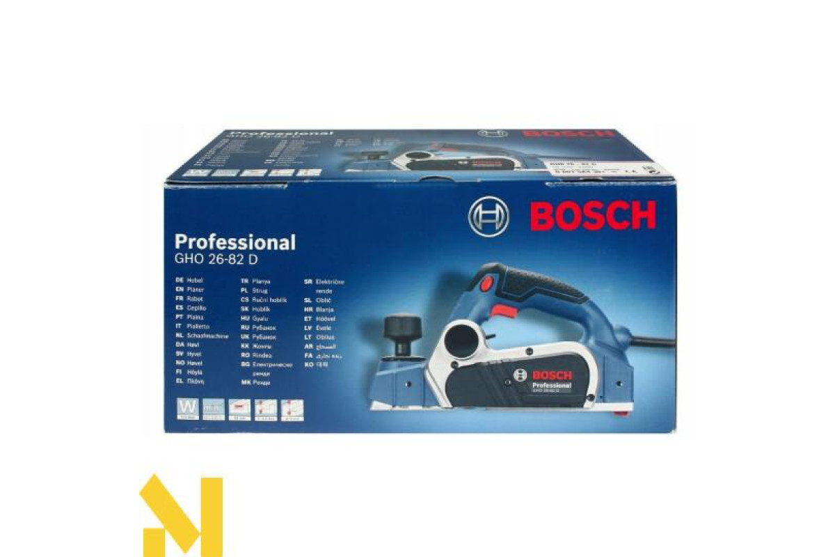 Рубанок Bosch GHO 26-82 D використовують для професійної обробки деревини. Висока продуктивність роботи досягнута завдяки двигуну в 710 Вт і редуктора, який видає 18000 об/хв. Крім цього є можливість регулювання глибини стругання від 0-3 мм, шириною 82 мм. Такі показники дають можливість якісно і точно обробити поверхню.