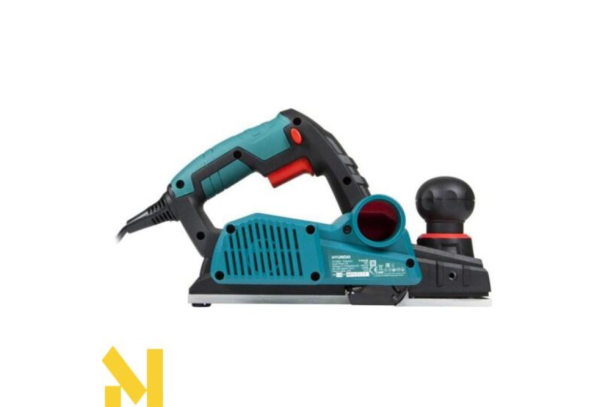 Рубанок Hyundai P 910-82 необхідний для вирівнювання граней дощок і бруса, видалення шорсткостей і подряпин, формування гладких поверхонь. Прорезинена рукоять зручно лягає в руку, практично не передає вібрації, оптимальна для впевненого хвата і повного контролю ситуації. Блокування кнопки включення забезпечить безпеку при робочих паузах, коли випадкове торкання не призведе до безпідставного запуску пристрою.