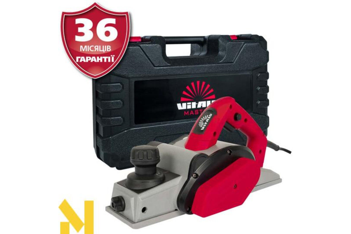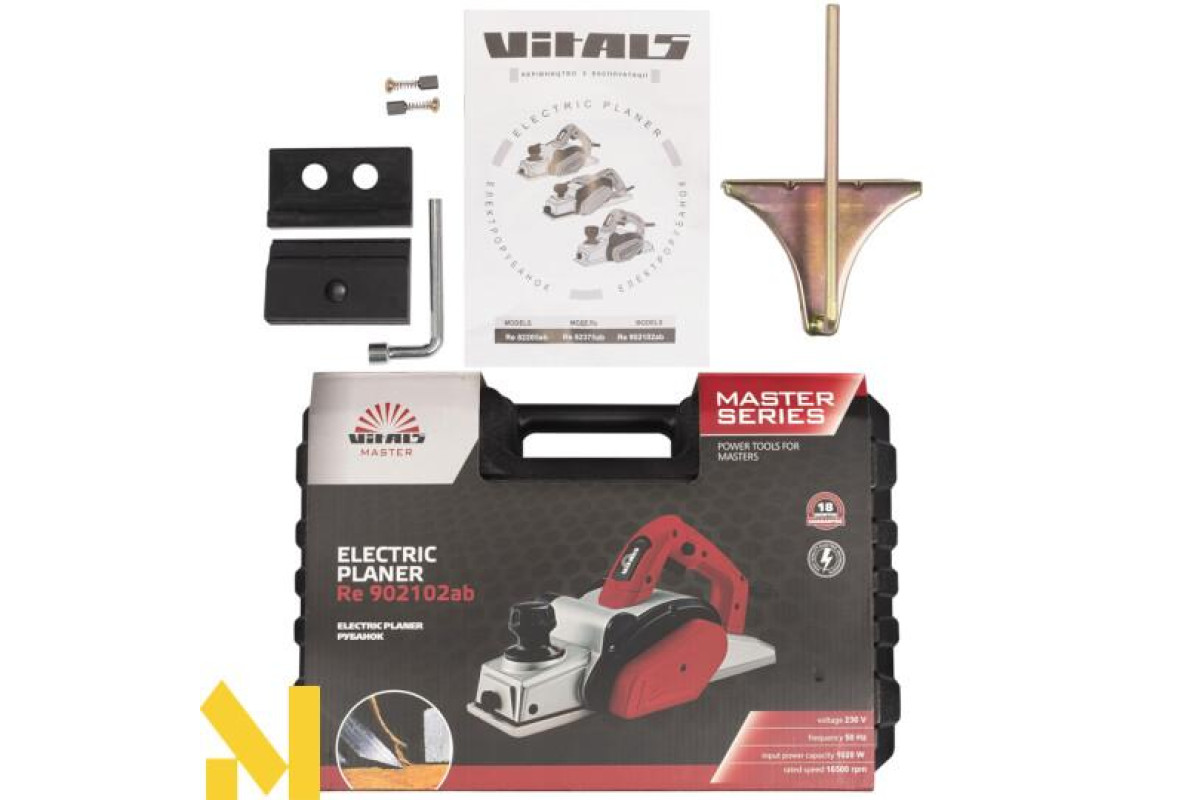 Vitals Master Re 902102ab - надійний і потужний електрорубанок, який буде незамінний в домашньому господарстві, але також підійде для виконання професійних завдань. Він призначений для стругання деревини, а також може успішно використовуватися для зрізу кромки або зняття фасок. Конструкція відрізняється довговічністю, має компактні розміри і важить всього 4,2 кг. Ергономічна конструкція рукоятки підвищує рівень комфорту в процесі роботи і не дає руці втомитися. Істотно полегшує транспортування наявність в комплекті пластикового кейсу.