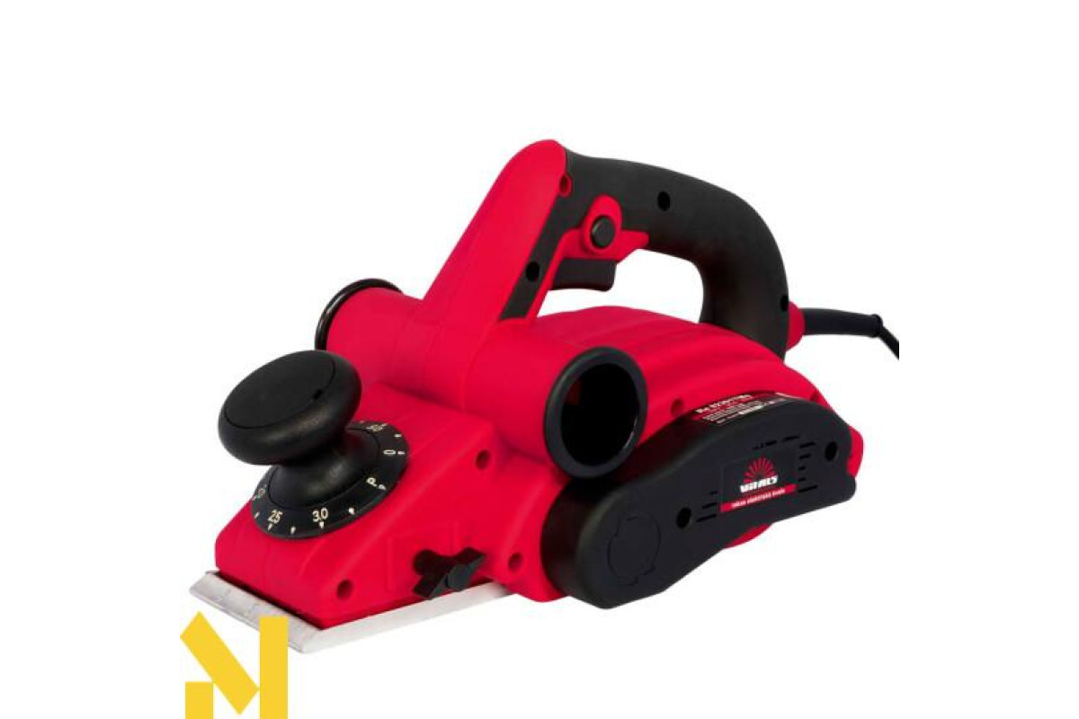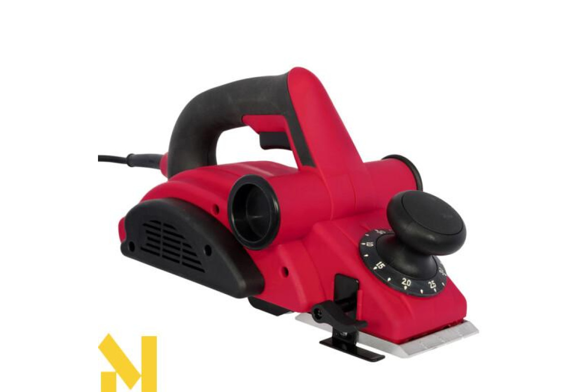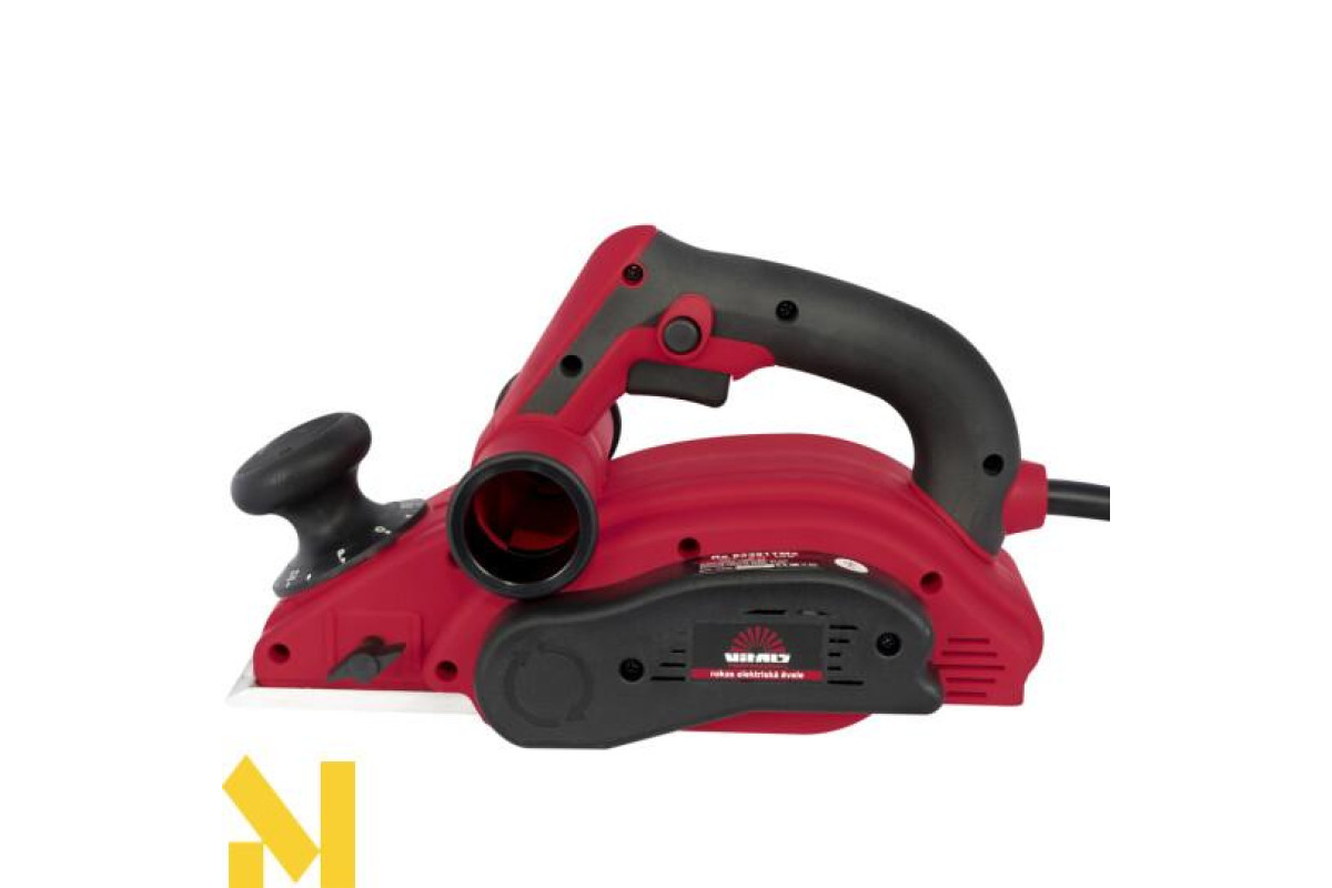 - Регулювання глибини обробки. Передня рукоятка регулює глибину стругання на 14 пунктів. Кожна позиція надійно фіксується. Максимальне усунення стружки 3 мм. Ширина ріжучого елемента становить 82 мм.