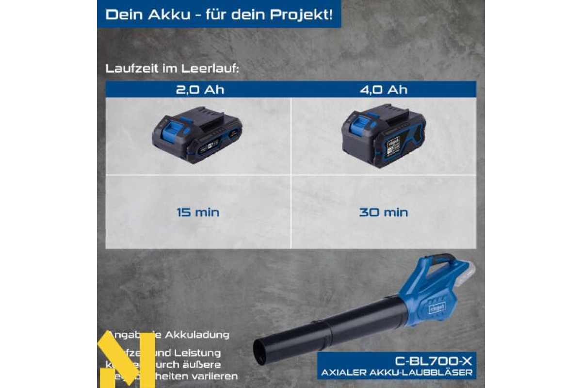 Акумуляторний повітродув Scheppach C-BL700-X ідеально підходить для видування листя, скошеної трави або іншого сміття з під'їзних шляхів, патіо, тротуарів або дворів. Осьовий повітродув забезпечує більшу потужність та оптимальні результати. Висока швидкість повітря до 155 км/год та витрата повітря 516 м³/год забезпечують швидке виконання роботи. Трубка повітродувки є знімною та знімною і кріпиться за допомогою швидкознімного кріплення без інструментів. Як частина серії Scheppach IXES 20-вольт, усі акумулятори та зарядні пристрої системи можна комбінувати з повітродувкою. Акумулятор та зарядний пристрій продаються окремо.