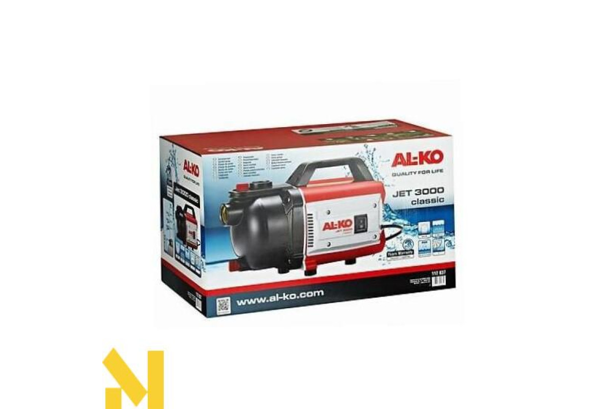 Садовий насос AL-KO 3000 Classic - універсальний в застосуванні: для зрошення газонів і грядок, для збільшення напору при експлуатації дощувальних установок і різних систем поливу, а також для перекачування і викачування водопровідної води, дощової води, води з плавальних басейнів;Корпус виготовлений із склопластику, який запобігає виникненню корозії і окислення металу.Висота занурення моделі дорівнює 8 м, а висота підйому не перевищує 35 м;Стійкість механізму досягається за рахунок наявності гумових ніжок;Між двигуном і робочою системою розташований керамічний сальник, підвищує безпеку моделі;Для роботи з садовим насосом AL-KO 3000 Classic не потрібні спеціальні знання і навички;Робочий тиск одно 3,5 бар;Пристрій отримав найширше застосування, оскільки може перекачувати і викачувати воду з басейну;Різьбова заглушка дозволяє зливати воду, коли є загроза замерзання;Конструкторами фірми АЛ-КО вдалося домогтися найвищого значення продуктивності, яке становить 3100 л / год;Модель користується великим попитом на світовому ринку;Садові насоси AL-KO Jet 601 дуже прості і зручні в експлуатації, тому не вимагають спеціальних навичок;Ергономічний дизайн