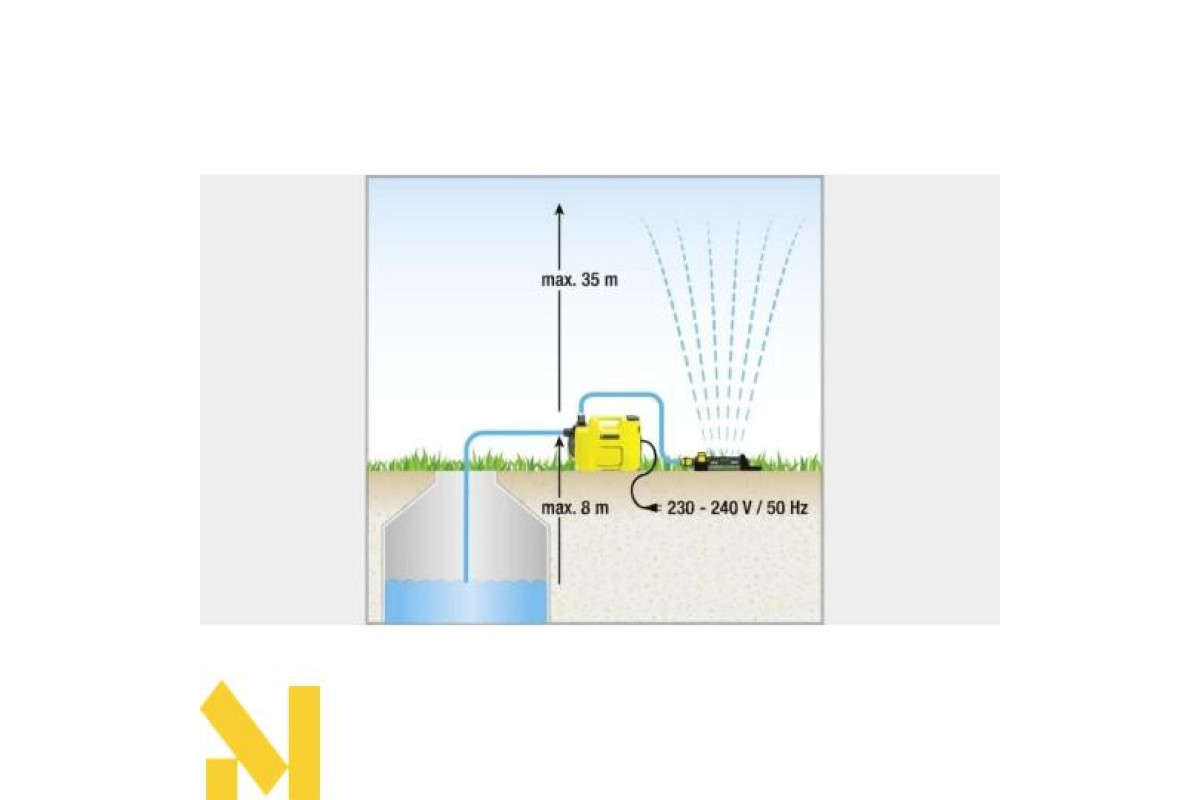 Ідеальний для поливу саду завдяки захищеним від перевантажень мотором. Максимальна висота всмоктування для даної моделі становить 8 м. Максимальна температура води для перекачування - 35 градусів , має клас захисту від води IPX4 .