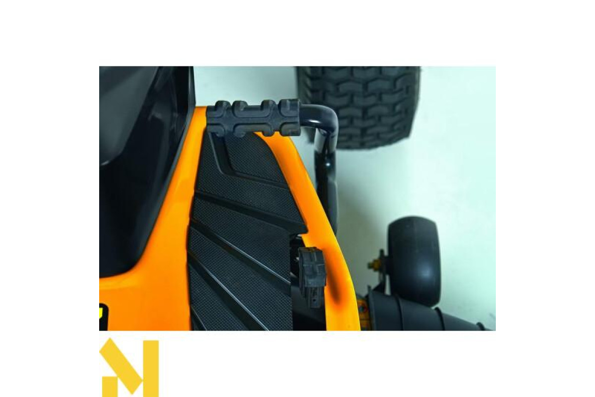 Ширина косіння становить 107 см. Висоту косіння можна обирати в одному з 12-ти положень з діапазону від 25 до 100 мм. Колеса на підшипниках забезпечують плавний і м'який рух. Радіус розвороту всього 17 градусів дає змогу почуватися комфортно навіть в обмеженому просторі. Для роботи в темний час доби передбачені фари. Сидіння з високою спинкою регулюється за висотою, ергономічне рульове колесо забезпечує комфортне робоче положення. Передбачено підстаканник для прохолодних напоїв.
