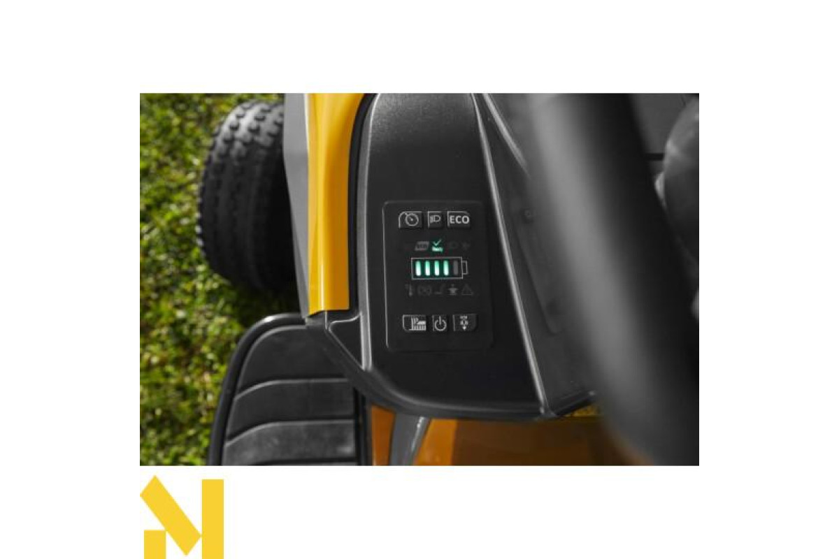 Вражаючий акумулятор e-Ride C500 на 48 В 40 Ач забезпечує достатню потужність для скошування до 4000 кв.м. приблизно за 60 хвилин і всього за одну зарядку. А оскільки вона живиться від батареї, ви будете відчувати менше шуму, менше вібрацій і ніяких викидів, ніж з бензиновою тракторної косаркою. Потужний трансмісійний двигун потужністю 1,2 кВт дозволяє розвивати швидкість до 9,5 км/год, в той час як два двигуна ріжучого леза загальною потужністю 3 кВт не вимагають ременів, шківів і не вимагають дорогого обслуговування. Просто сядьте, включіть і вперед.