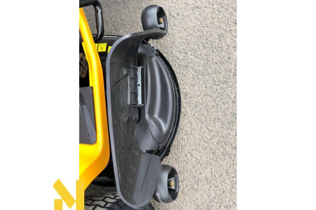 Система регулювання положення сидіння забезпечить комфорт водієві з будь-яким зростанням. Зміна його положення виконується одним натисканням важеля. Щоб змити з деки залишки трави, кінець шланга з водою слід підключити до вмонтованої в її корпус форсунки.