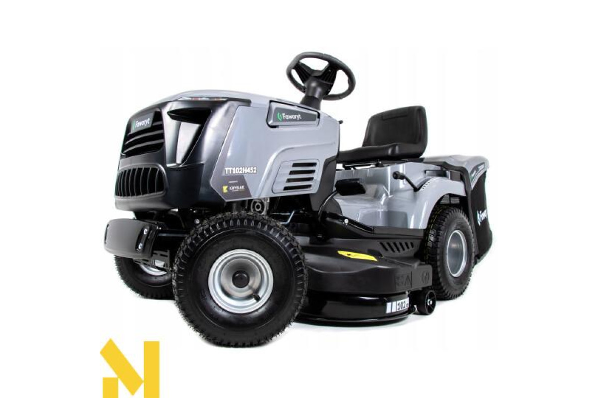 Завдяки двигуну Loncin об’ємом 452 куб.см і номінальною потужністю 9,2 кВт TT102H452 має достатньо потужності, щоб впоратися з будь-яким завданням. Ширина скошування 102 см і швидкість руху до 8,8 км/год дозволяють швидко і ефективно косити навіть великі площі. Садовий трактор Faworyt TT102H452 також дозволяє регулювати висоту зрізу на 7 рівнях від 30 до 90 мм, що дає повний контроль над кінцевим ефектом від роботи. Об’єм травозбірника 245 л дозволяє косити довше, не потребуючи частого спорожнення травозбірника. Крім того, електричне ввімкнення ножів косарної деки та підйом деки з рівня водія роблять керування трактором простим та комфортним. Мінімальний радіус повороту 45 см дозволяє легко маневрувати у важкодоступних місцях. Паливний бак об'ємом 7,5 л дозволяє працювати протягом тривалого часу без частої дозаправки. Садовий трактор Faworyt TT102H452 - інструмент, який забезпечить вам ефективну роботу та ідеальний зовнішній вигляд вашого саду. Інвестуйте в нього сьогодні та переконайтесь у його надійності та функціональності!